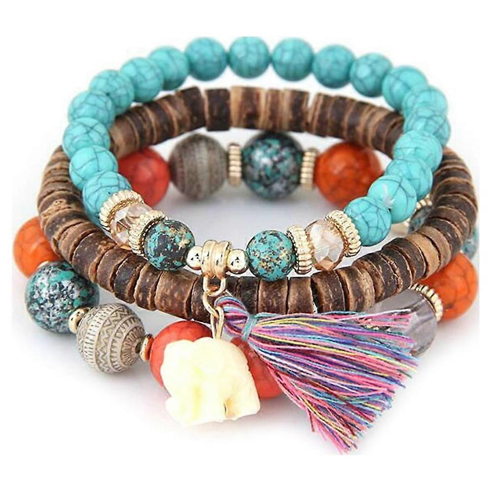 EIGTHTAIL Women Bracelets Wood Beads Bracelets Boho Small Elephant Charm Bracelets Set Jewelry TPBY