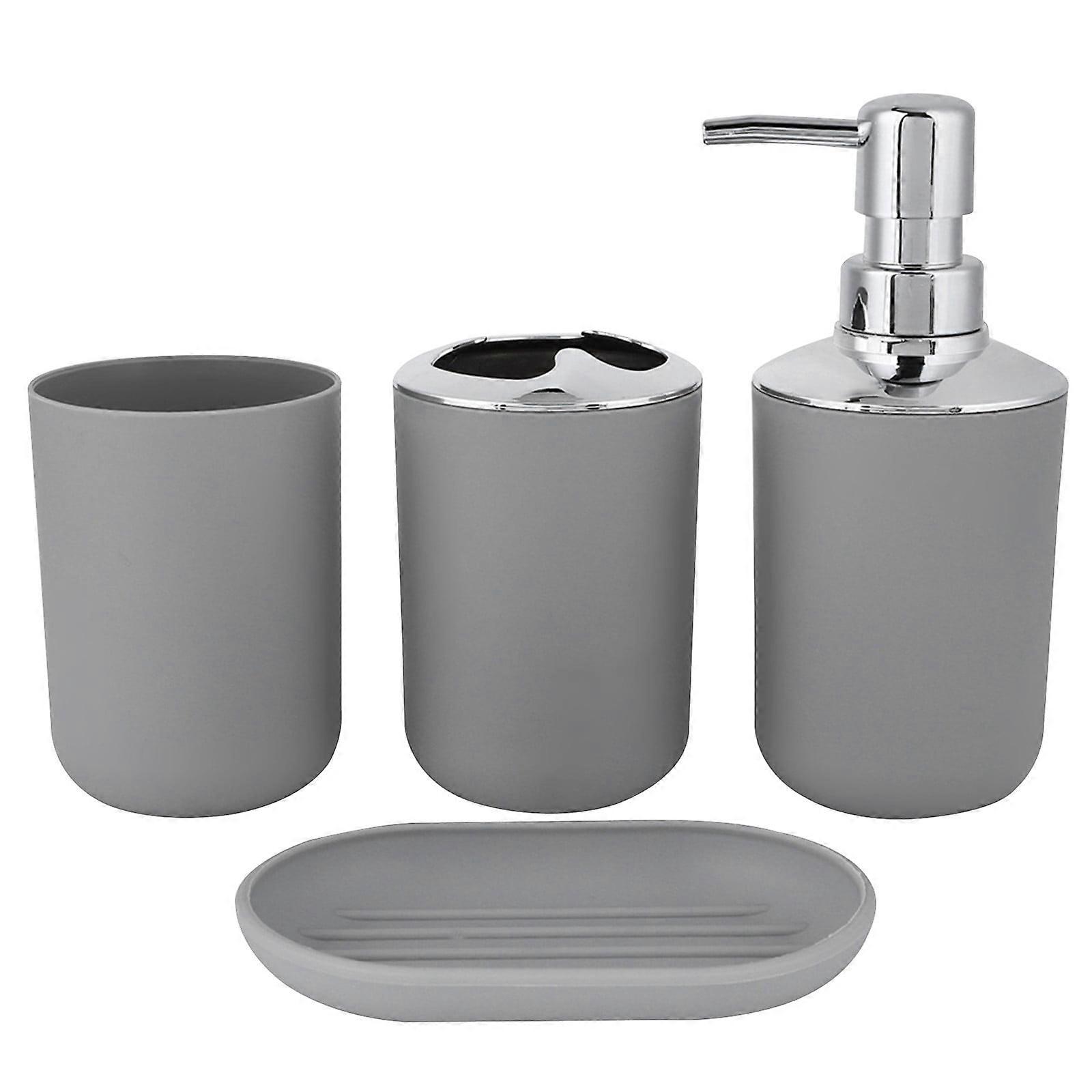 JeashCHAT 4-Piece Bathroom Set: Soap Dispenser, Toothbrush Holder, Cup, Soap Dish - Gray Countertop Accessories
