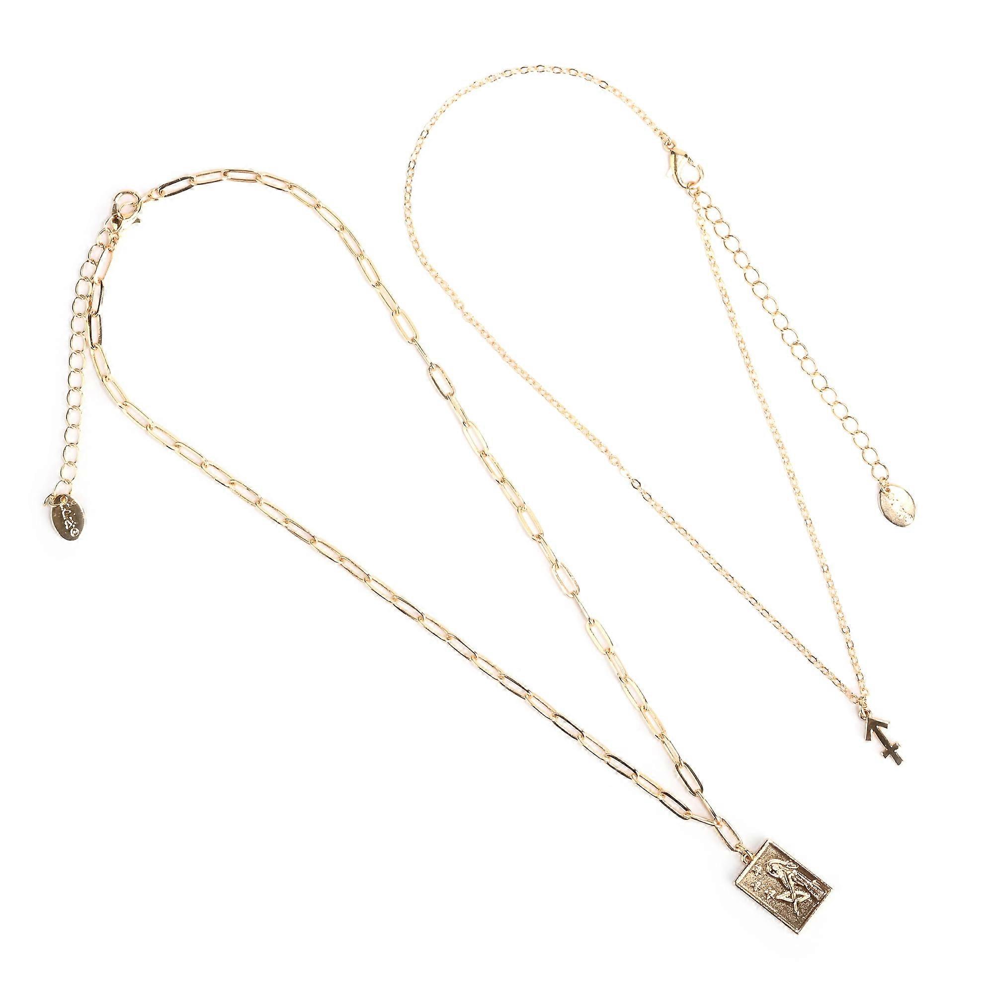 Claire's Girls Teen Gold Zodiac Sagittarius Necklace Set, Lobster Closure, 2-Pack, 38378