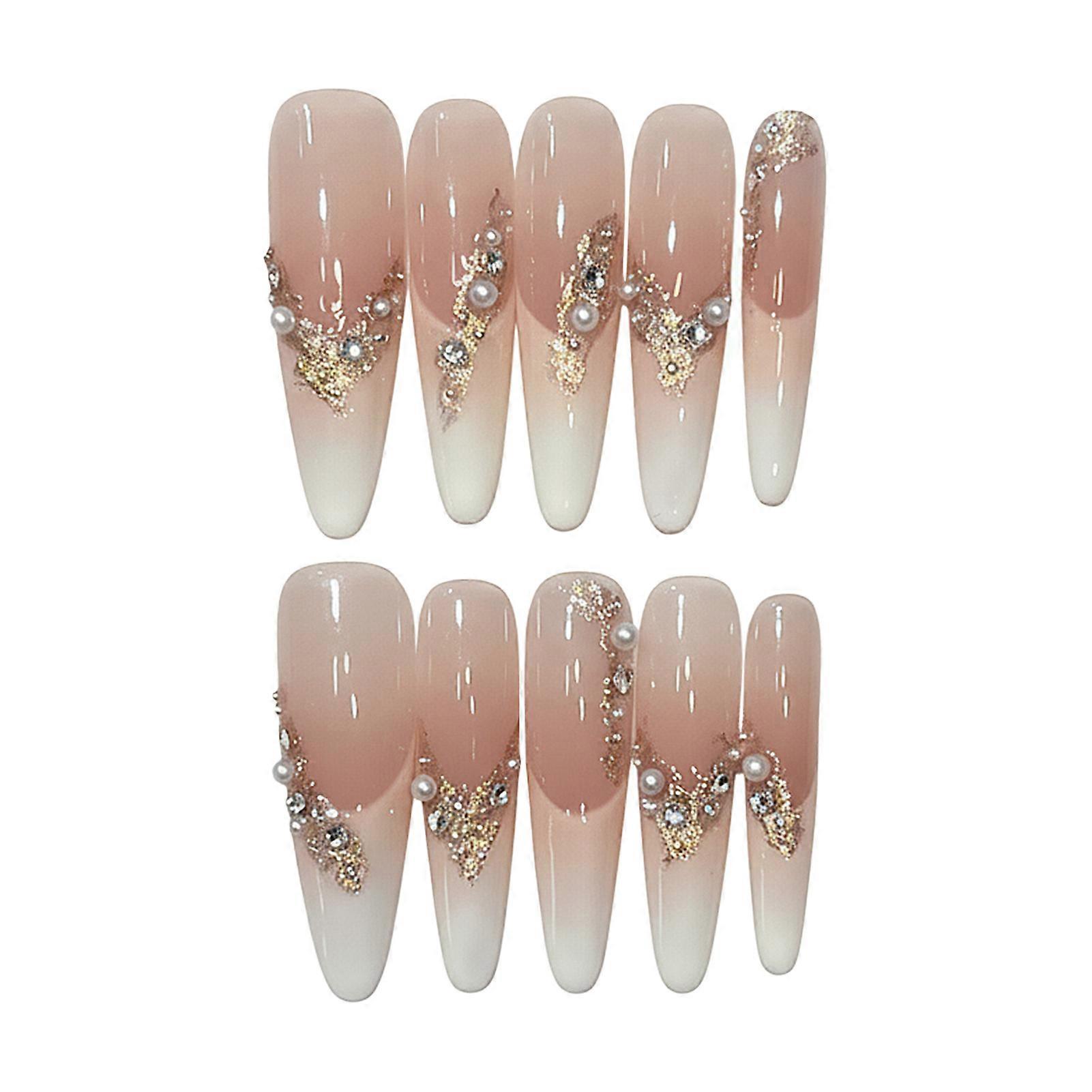 10Pcs Fake Nails French Blush Design Press On Nails Artificial Acrylic False