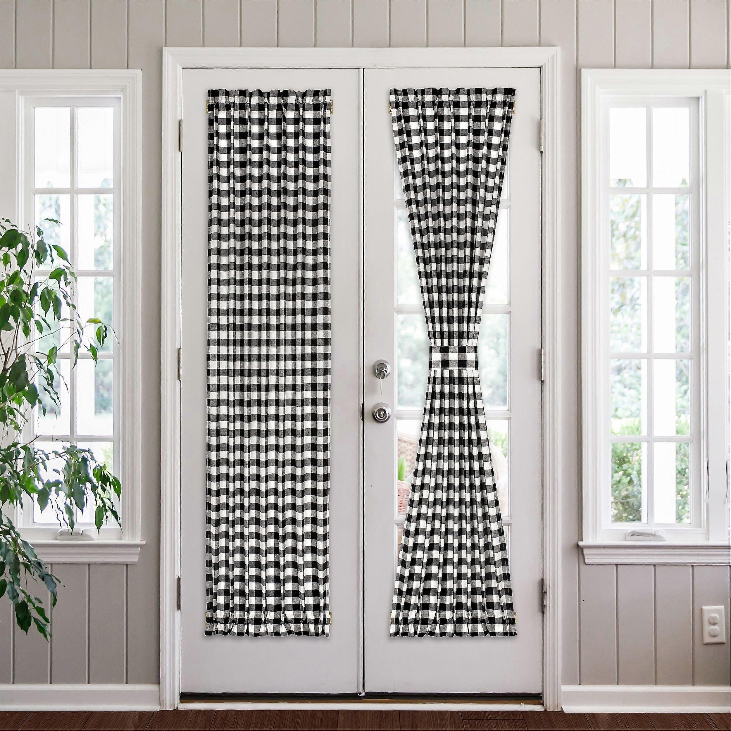 Achim Buffalo Check Indoor Polyester/Cotton Light Filtering Checkered Door Curtain Panel, Black/White, 25-in W x 72-in L