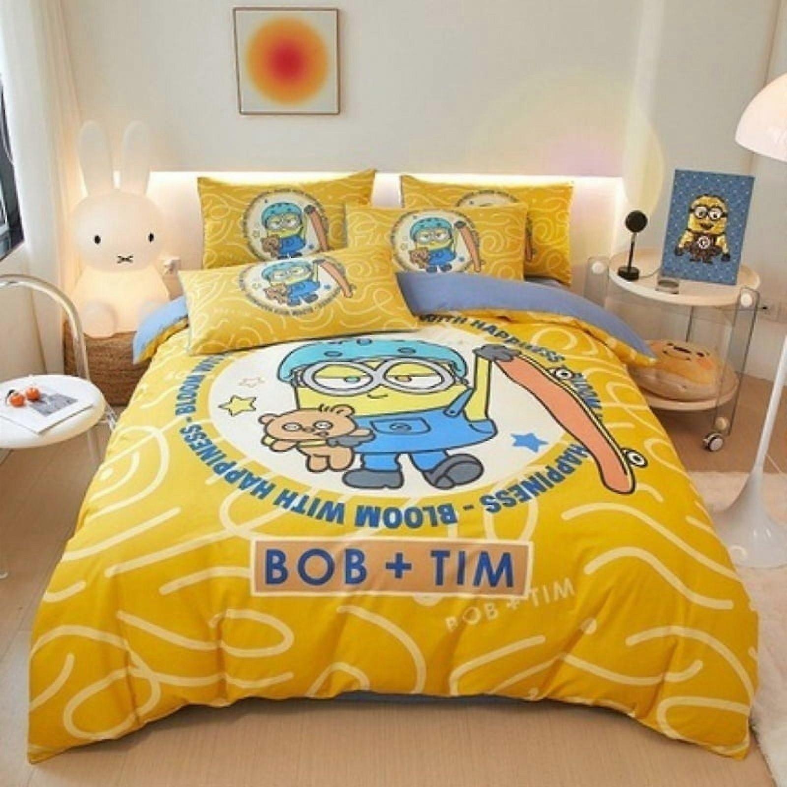 Minion cover pillowcase, cartoon bedding set, children's set home room decoration, boy and girl quilt set three piece bedding set