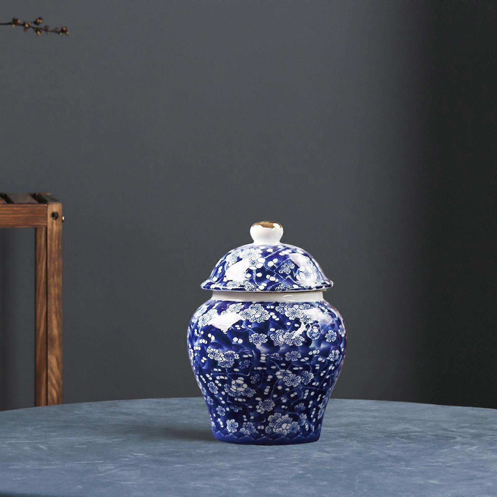 Chinese Style Ceramic Ginger Jar Decorative Flower Vase Temple Jar Airtight Lid Tea Canister Traditional Multi Purpose Home Decor Accent