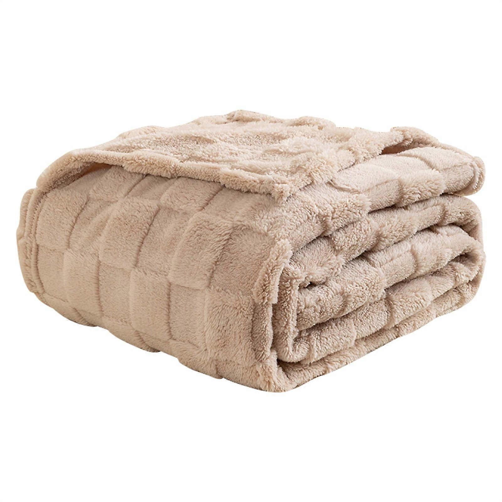 Nayueo Thickened Checkerboard Blanket 70×100cm, Khaki Textured Plush Sofa Blanket for Home, Nap, High Appearance - 1 pc
