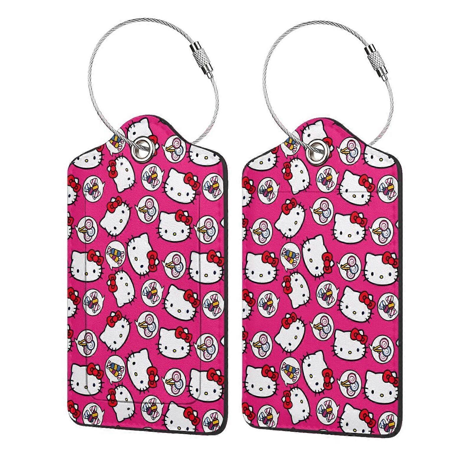 Hello Kitty 2PC Stainless Steel Ring Leather Luggage Tags, Waterproof ID Holder, Compatible with Travel Bags, 2.9" * 4.6"