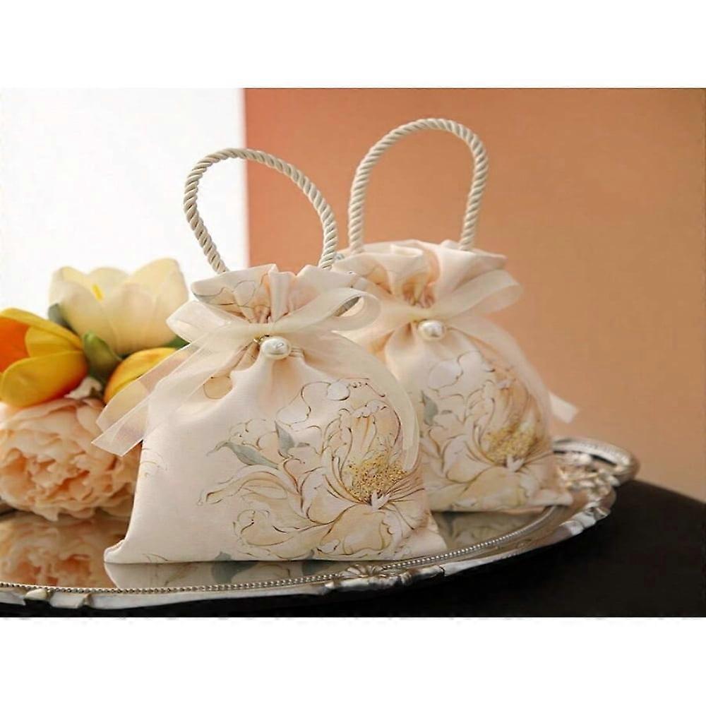 LOVEVER 10pcs Wedding Favor Bags Gift Candy Boxes With Pearl & Ribbon Floral Design Luxurious