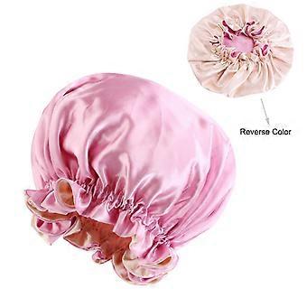 High Quality Double Sided Layer Waterproof Shower Cap Solid Color Satin Hair Bonnet Cap For Women