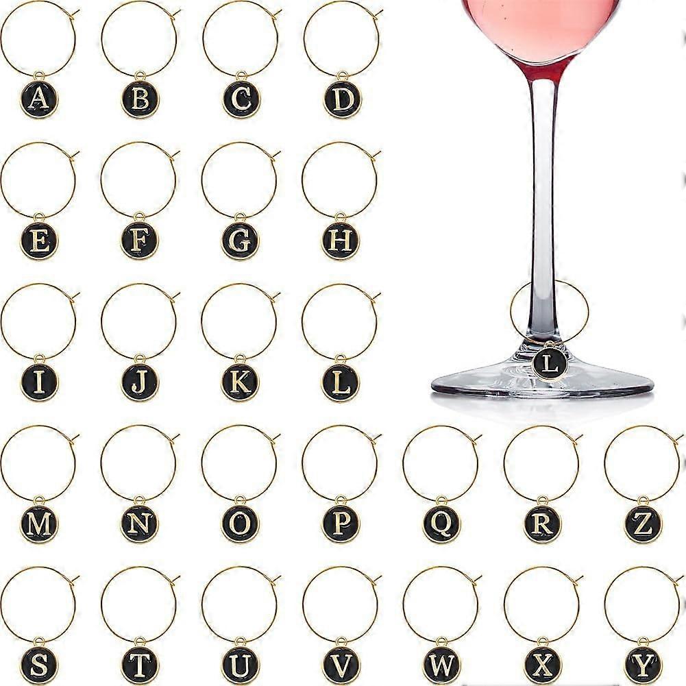 WHTCHSU 26-Piece Wine Charms with Rings, Tags, Metal Letters - Compatible with Stem Glasses - Black