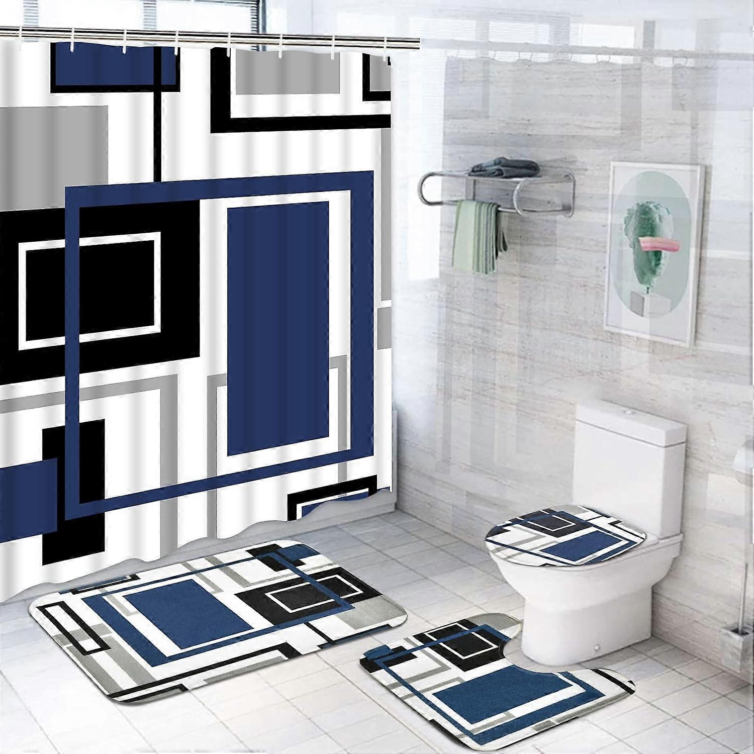 Product DescriptionLikiyol Burnt Orange Geometric Shower Curtain SetsAbout Likiyol: As a professional manufacturer of home textiles, Likiyol is committed to helping every family create a comfortable lifestyle. Designer Says: Orange geometric pattern, elegant and fresh, bring your bathroom a stylish decoration effect. Likiyol 4 Pcs Shower Curtain Sets8 Reasons to chooseMaterials: Durable Fabric and Soft FlannelDesign: Weighted Hem and Fine StitchesTechnology: HD Printing and Well StitchingQuality: Waterproof, Durable, Never FadeChoice: Medium and LargeCare: Hand Wash or Machine WashInstall: 12 Free Strong HooksStyle:Morden AbstractLikiyol Modern Abstract Shower Curtain setsSuperb CraftsmanshipWe have high-quality fabric and flannel, advanced high-definition printing technology, odorless ink, a unique design team, and a strict quality control team. Please rest assured of our products. Bathroom Set SizeMedium: shower curtains: 69"W x 70"H, toilet lid cover: 14.6"W x 16.5"L; U shape rug: 15.7"W x 17.7" L; Bath Mat: 15.7"W x 23.6"L Large: shower curtains: 69"W x 70"H, toilet lid cover: 14.6"W x 16.5"L; U shape rug: 20.1" W x 20.1" L; Bath Mat: 19.7" W x 31.5" L Premium Polyester Fabric Soft, no smell, and no fading.Shrinkage and tear resistance.HD printing and fine Stitching.Waterproof Material Waterproof, durable, odorless.Water droplets are not easy to stay and can be used without a liner.Machine wash & Hand wash Machine washable & hand washable.Wash cold by gentle cycle.Do not bleach. Anti-Slip DesignThe bathroom rug has dense strong non-skid point to prevent you from falling down. thickened bathroom mat brings double enjoyment of smooth and comfortable. Reinforced Top HemThickened bottom edging keeps the shower curtain stretched and in place. Keep you away from clinging when showering. Assemble QuicklyHooks can be used to connect reinforced buttonholes of the shower curtain with the stick in your bathroom. You can successfully install it within a few minutes. Fabric PREMIUM MATERIAL: Burnt orange shower curtain: soft, durable and waterproof polyester. Bathroom rug: thick, high-quality, excellent non-slip flannel. ADVANCED DESIGN: This modern shower curtain set adopt HD printing technology, which make the pattern clear and vivid, true and not easy to fall off and fade. SIZE INFORMATION: Abstract shower curtain 69" W x 70" H; toilet lid cover: 14.6" W x 16.5" L; U shape rug: 15.7" W x 17.7" L; Bath Mat: 15.7" W x 23.6" L. This size is suitable for most home bathrooms, Please confirm whether the size is suitable for you. EASY TO INSTALL & CARE: With our 12 sturdy free hooks, you can easily install this modern shower curtain. It can be washed by hand or machine in cold water. MULTIPLE ENVIRONMENTS: This orange bathroom set can be easily installed in your home, apartment, hotel, dormitory, club and other places in need. Fabric PREMIUM MATERIAL: Burnt orange shower curtain: soft, durable and waterproof polyester. Bathroom rug: thick, high-quality, excellent non-slip flannel. ADVANCED DESIGN: This modern shower curtain set adopt HD printing technology, which make the pattern clear and vivid, true and not easy to fall off and fade. SIZE INFORMATION: Abstract shower curtain 69" W x 70" H; toilet lid cover: 14.6" W x 16.5" L; U shape rug: 15.7" W x 17.7" L; Bath Mat: 15.7" W x 23.6" L. This size is suitable for most home bathrooms, Please confirm whether the size is suitable for you.