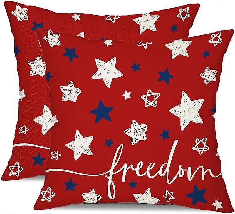 4th of July Pillow Covers 18x18 inch Set of 2 - Fireworks, Stars, Freedom Decor - Compatible with Independence Day Decorative Cushion Cases for Sofa,