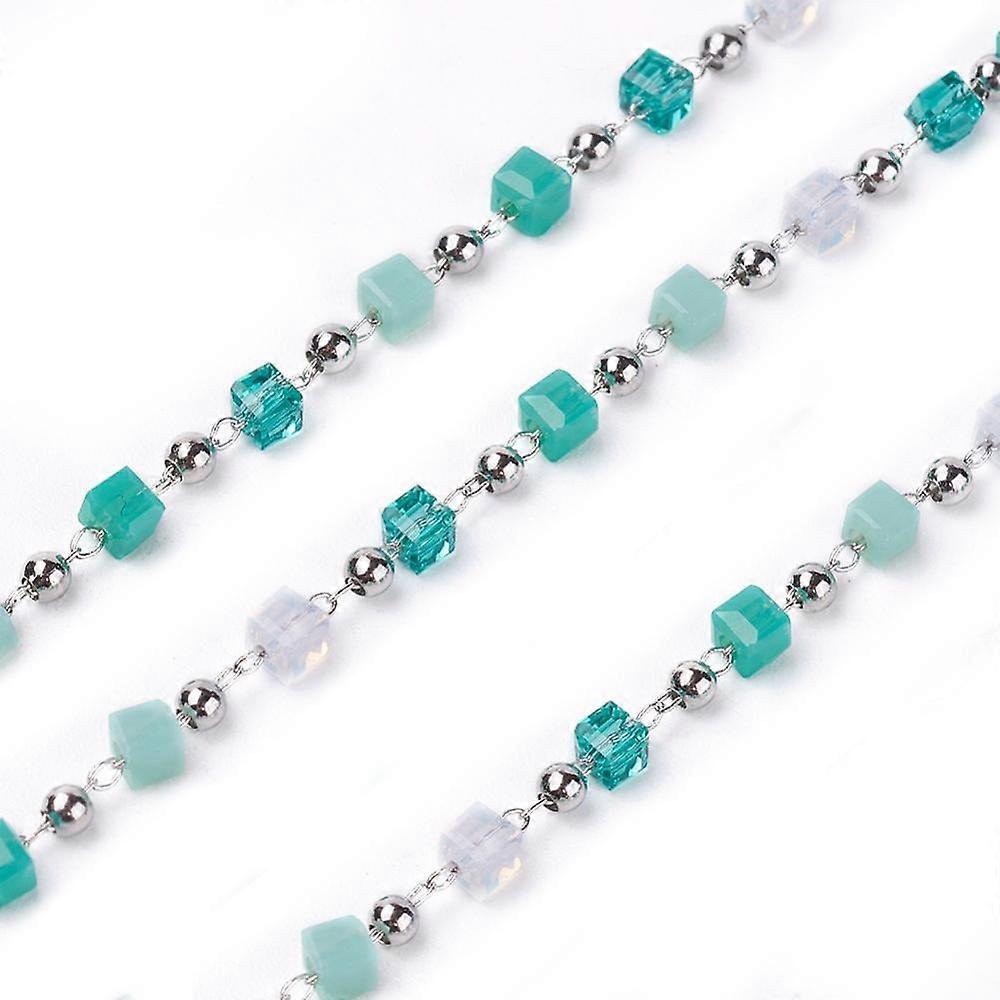 1m 3.28 Feet Handmade Glass Beaded Chains Soldered with Brass Findings Long-Lasting Plated Real Platinum Plated Cube