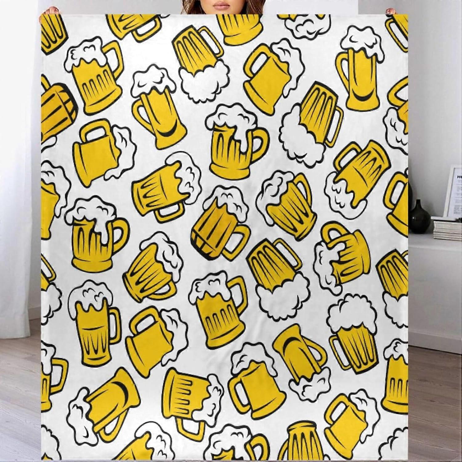 Beer Mugs Throw Blanket 50x60 Inches, Retro Cartoon Soft Cozy Custom Lightweight Flannel Fleece, compatible with couch, bed, sofa, chair