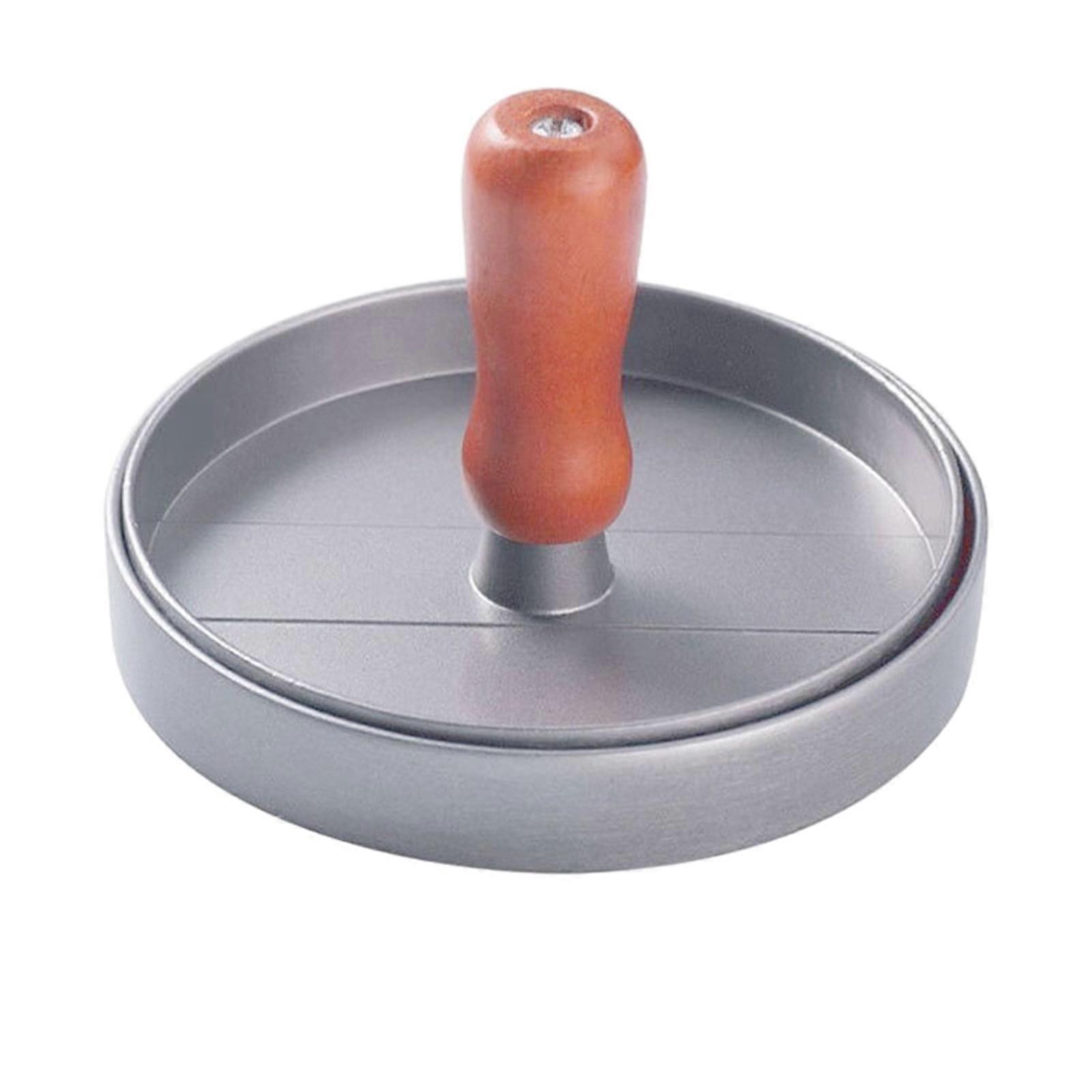 MERILER Stainless Steel Burger Press with Non-Stick Coating and Wooden Handle - Easy to Clean and Use, Compact Kitchen Essential