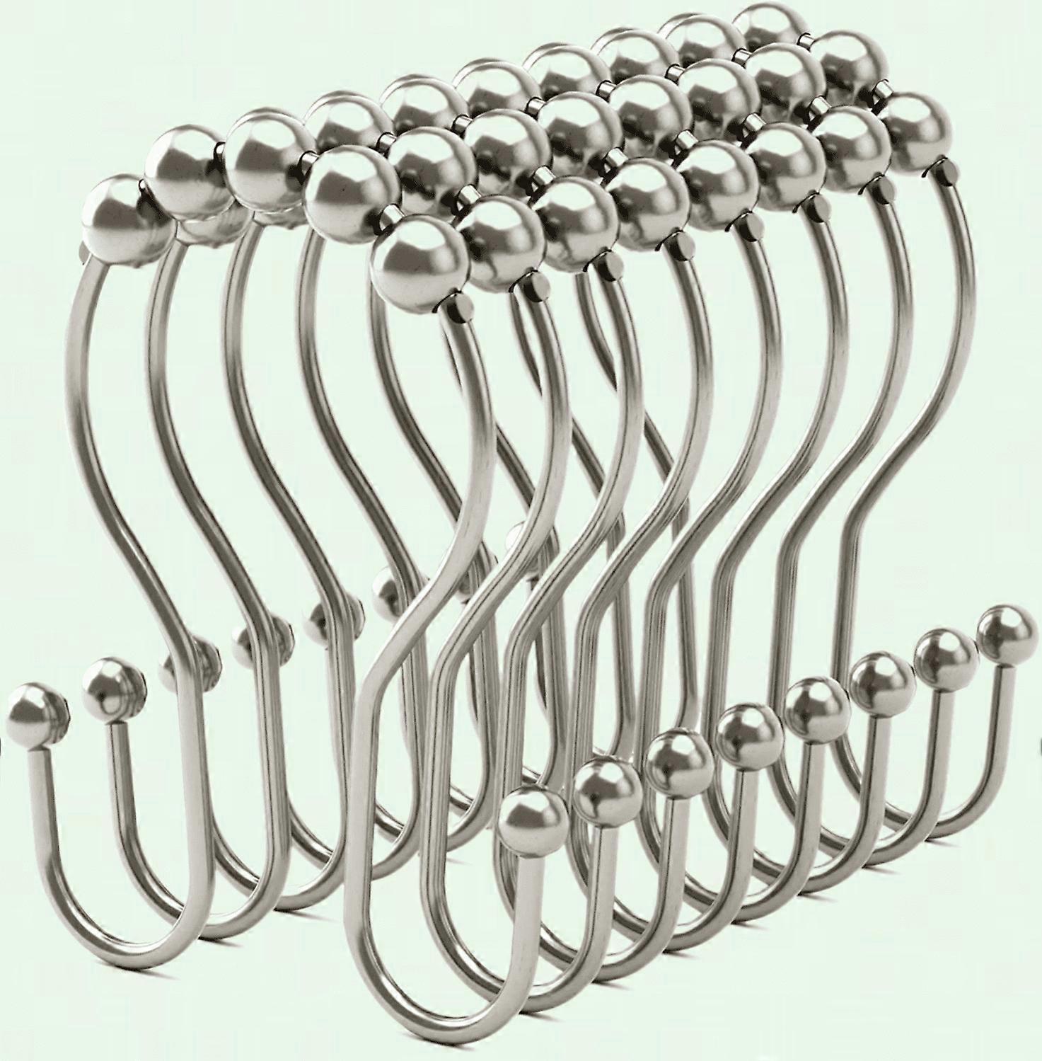 Rust Proof Shower Curtain Hooks, Double Sided Design for Balanced Hanging, Brushed Nickel Shower Hooks for Curtain - Set of 12