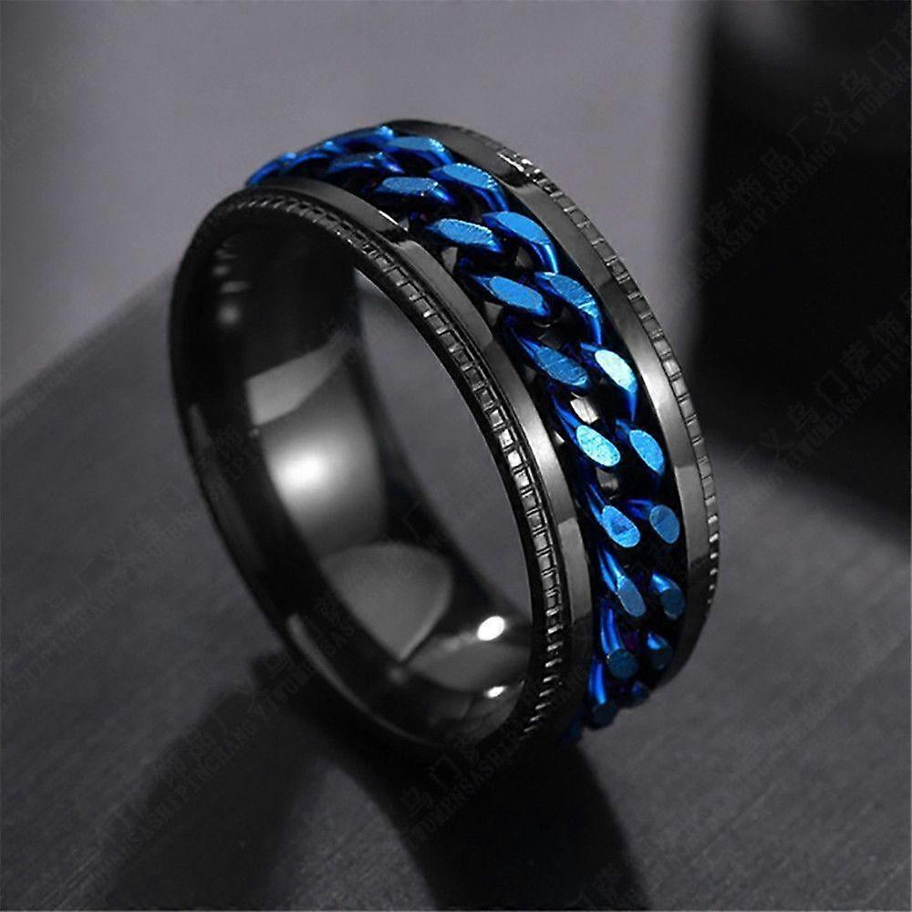 Goth Simple Fidget Spinner For Teens Stainless Steel Rotating Twist Chain Korean Finger Rings Women Anxiety Rings Men Rings BLUE 8