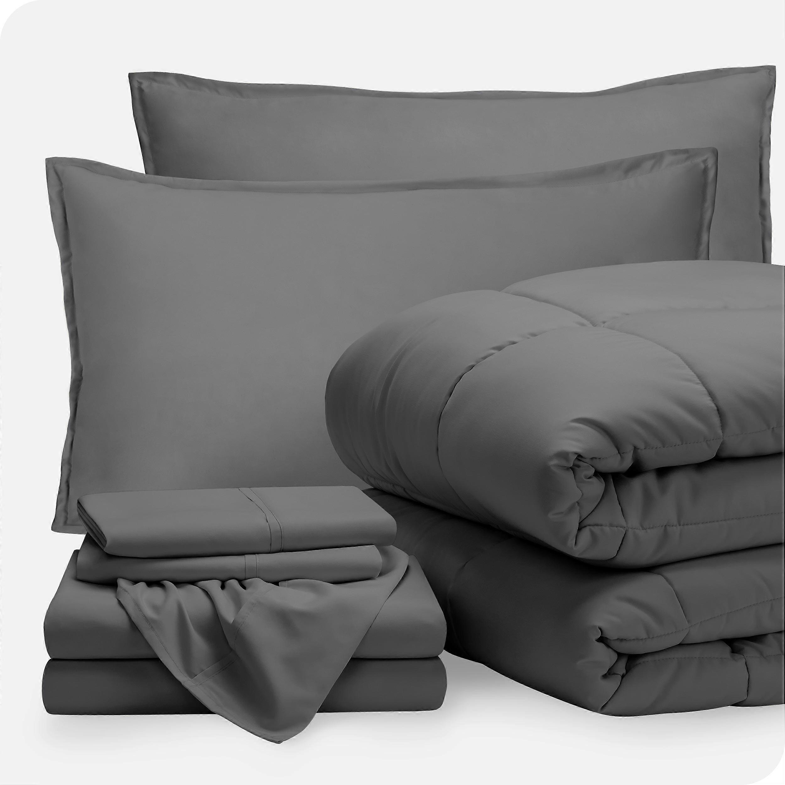 Bare Home 7-Piece Bed-in-a-Bag - Queen, Gray with Gray Sheet Set