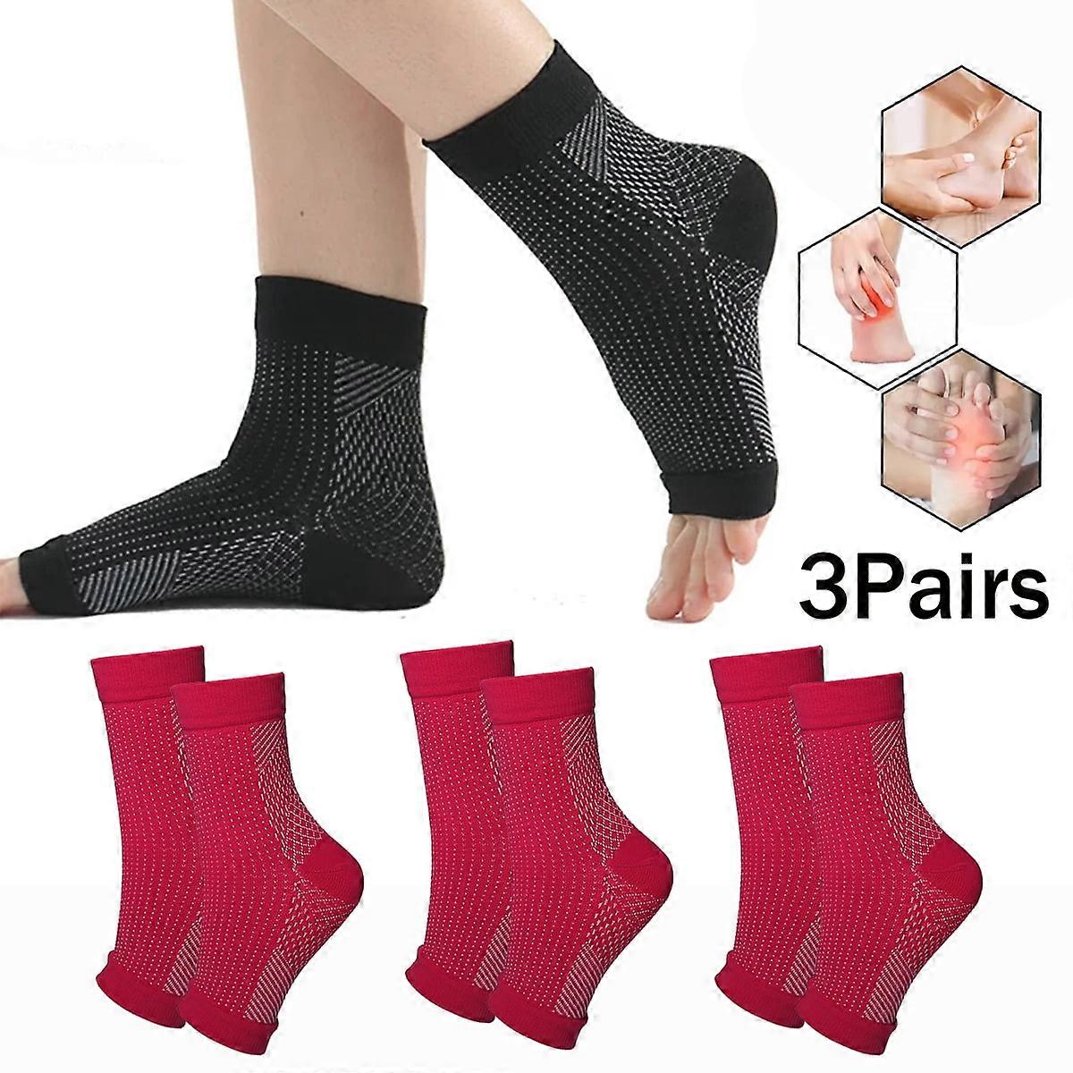 3Pairs Foot Anti-Fatigue Socks Ankle Support Relief Pain Compression Sock For Men Women Sport Yoga Socks,Red,S/M