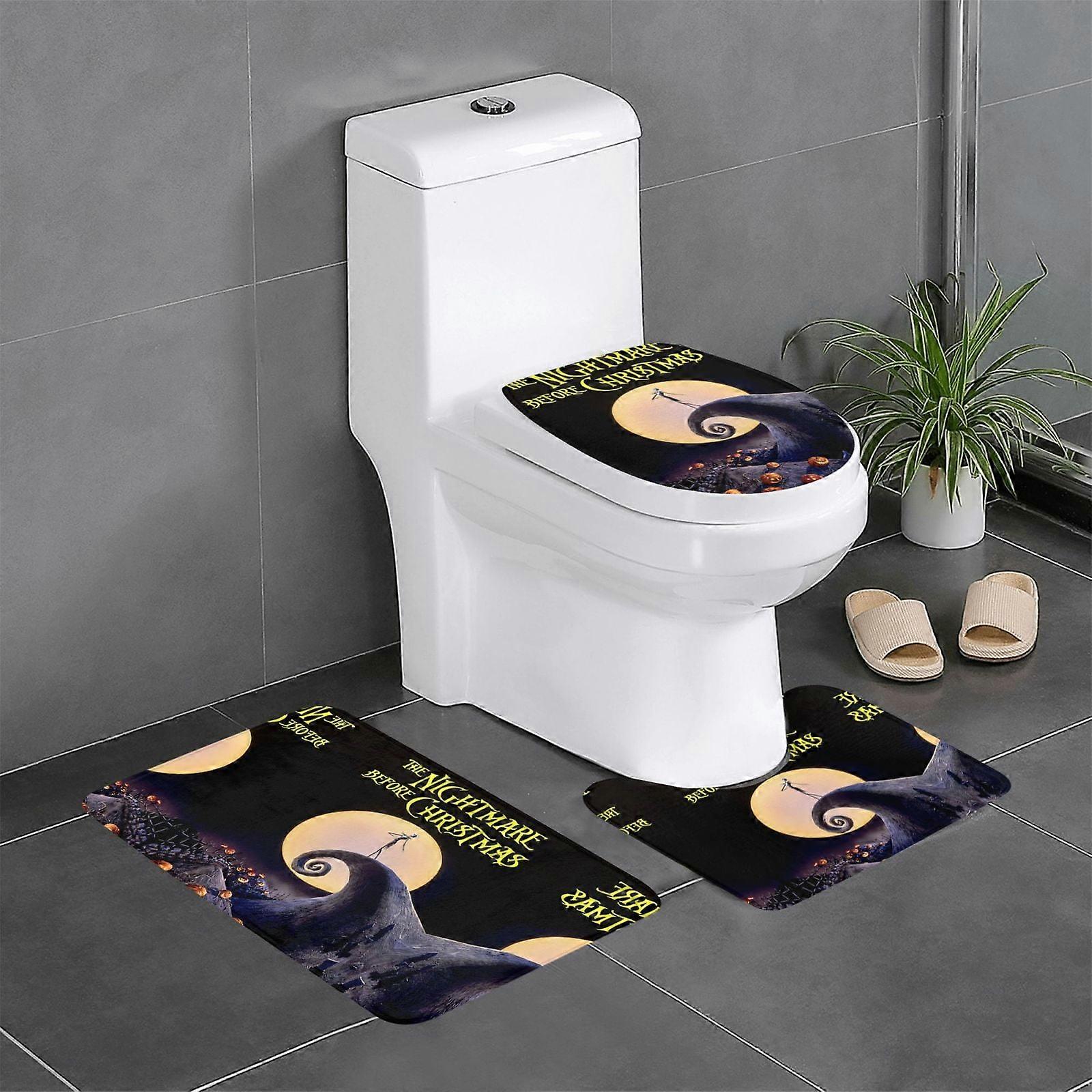 Nightmare Before Christmas Flannel Bathroom Rugs 3-Piece Set, Non-Slip Bath Mat & U-Shaped Toilet Rug, 16x24 Inch, White