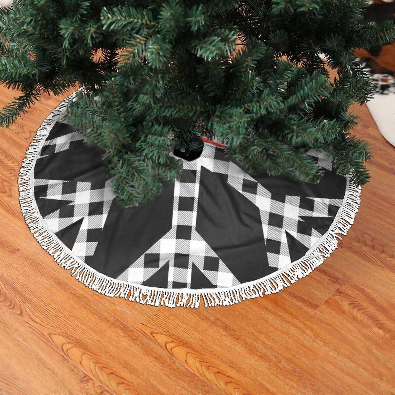 Christmas Fringed Lace Tree Skirt, Snowflake Black White Buffalo Check Soft, Light, Good Touch Tree Skirt 48"