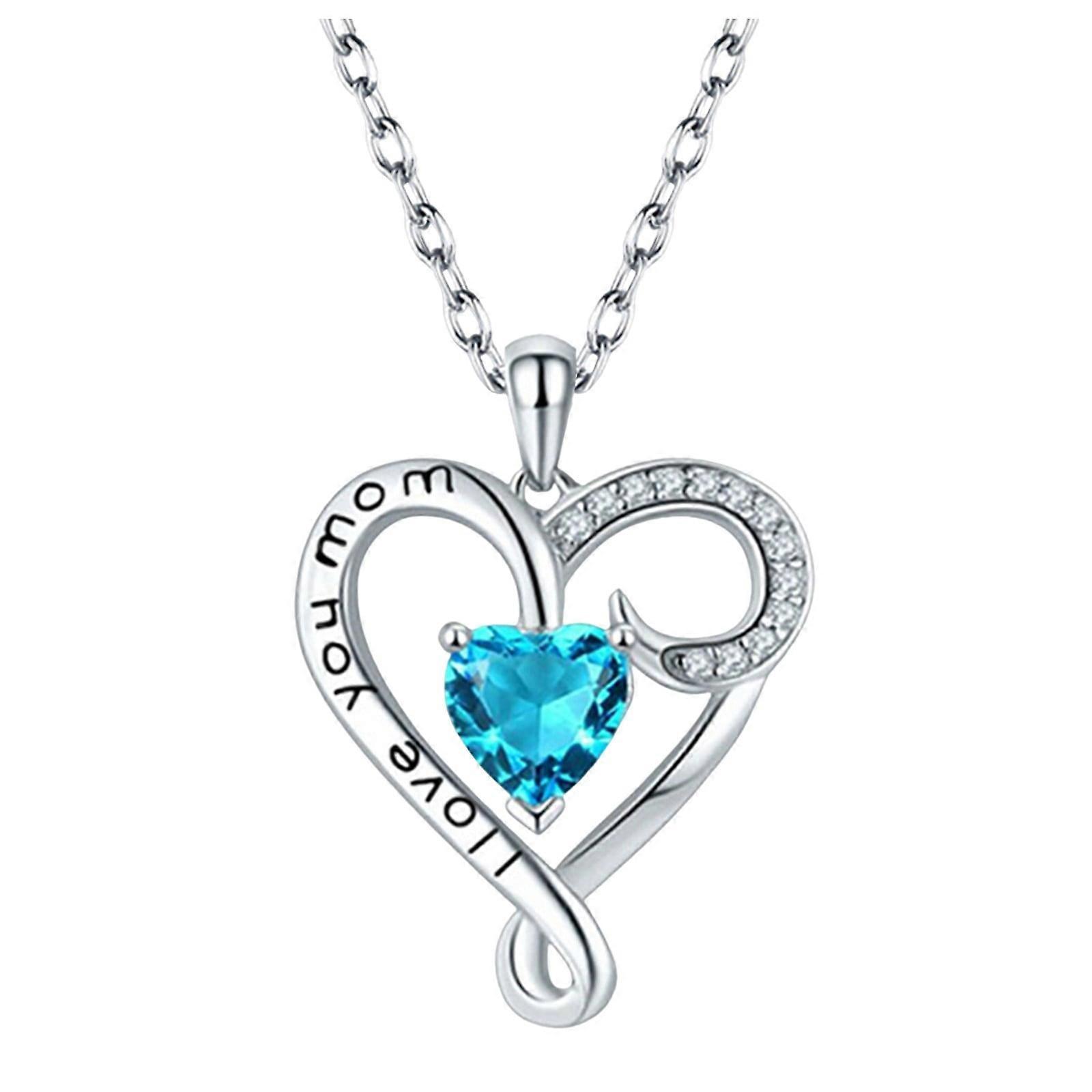 ZHENYANGli "I Love You Mom" Heart Shaped Exquisite Pendant Mother's Day Gift Chain