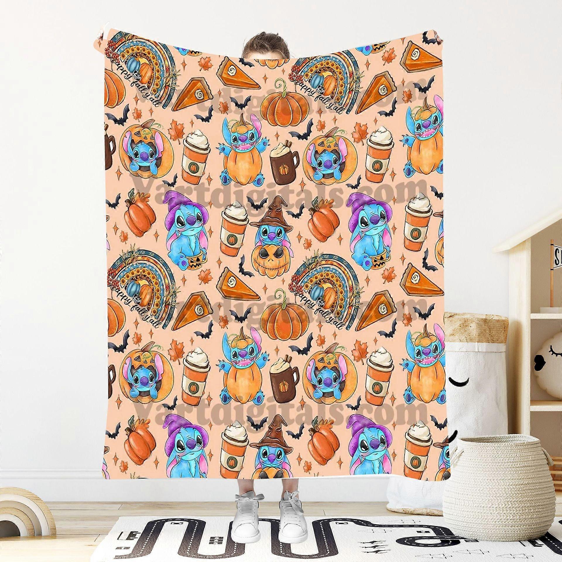 Halloween Stitch Throw Blankets Cute Cartoon Warm Soft Plush Lightweight Fleece Flannel Blanket for Bed Sofa Office Picnic Travel 50*60 S-2