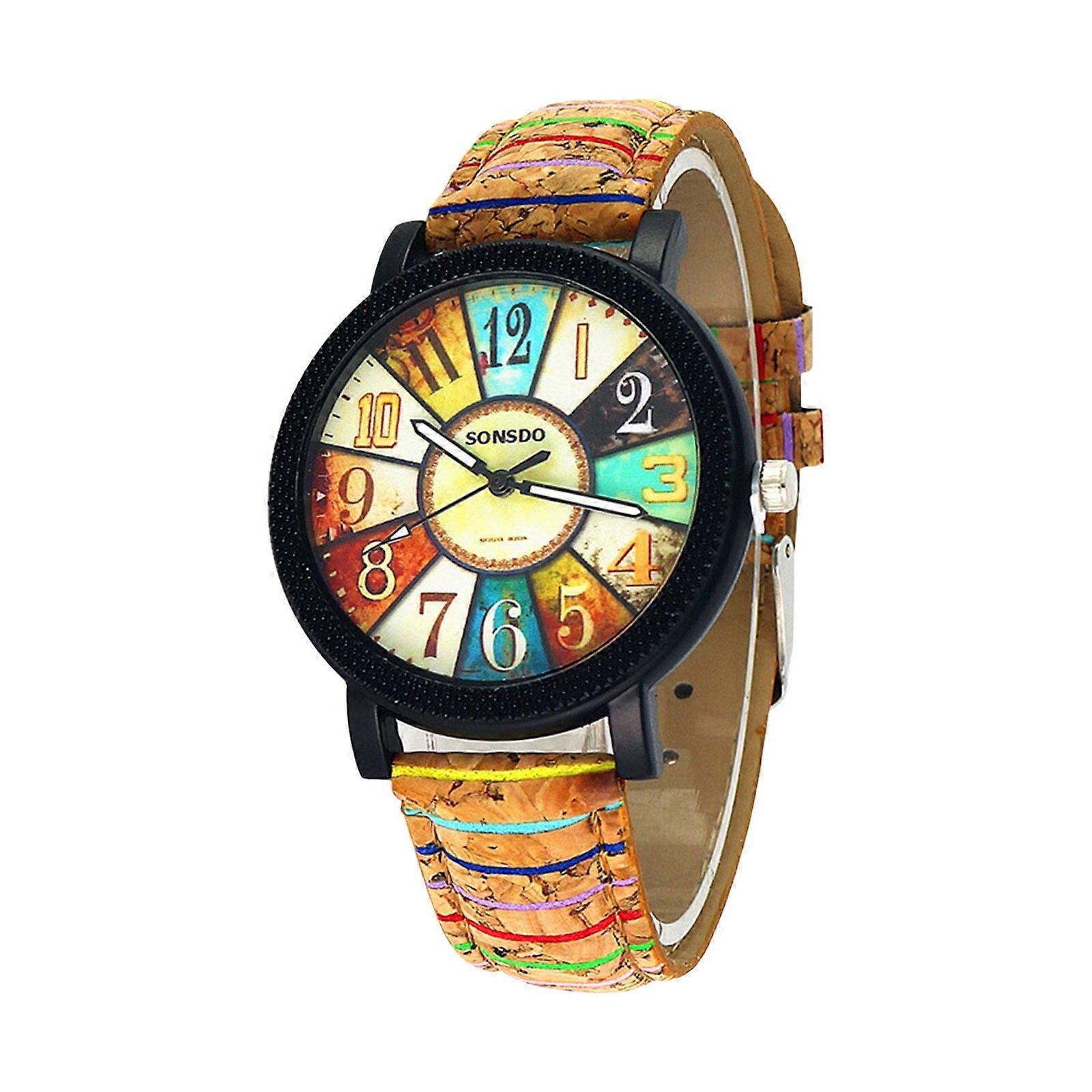 WQQZJJ Women's Vintage Quartz Watch with Multicolour Rainbow Leather Band - Compatible with Gift Ideas, Casual Bracelet Watch for Clearance