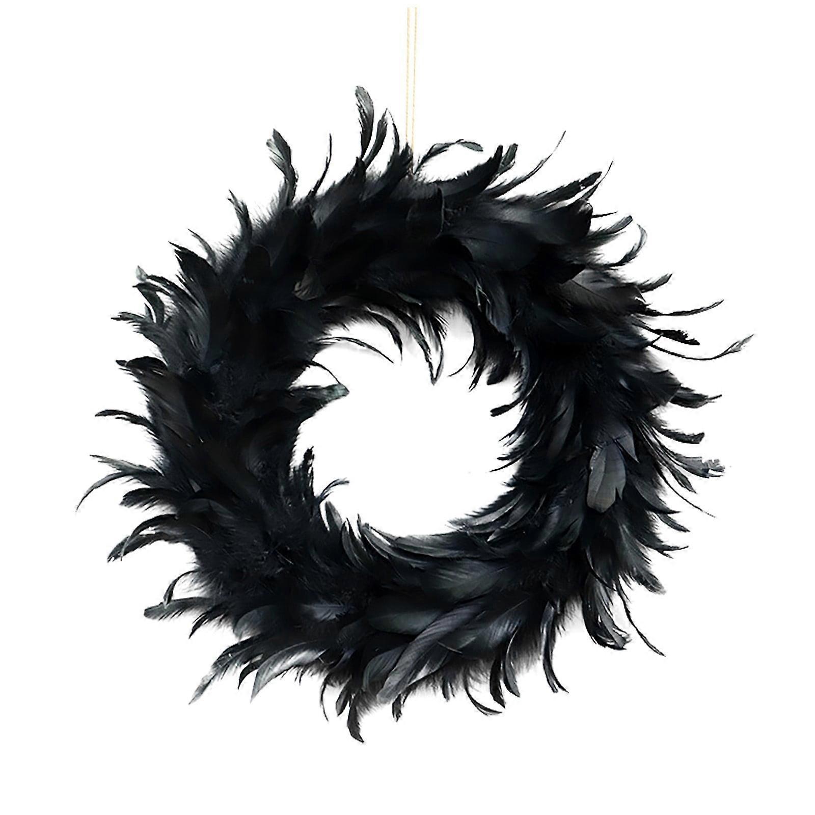 3 Pack 13.78" Black Feather Wreath for Halloween, Natural Cocktail Feathers, Photo Props, Front Door Decor, Witch Party Spooky Scene