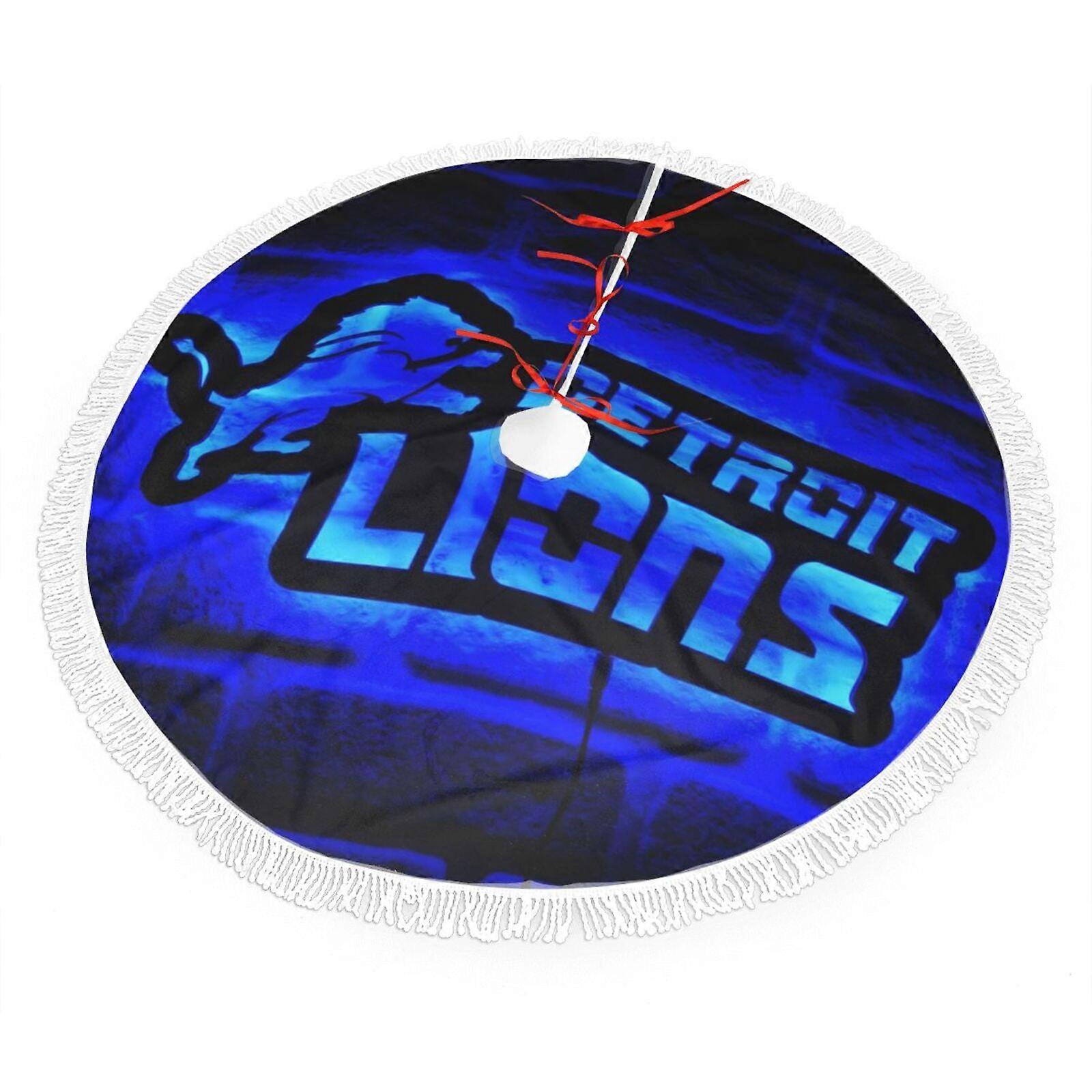 Lions Christmas Fringe Edge Plush Tree Skirt, compatible with NFL decor, bright colors, easy install, sports fan gift (30" 36" 48")