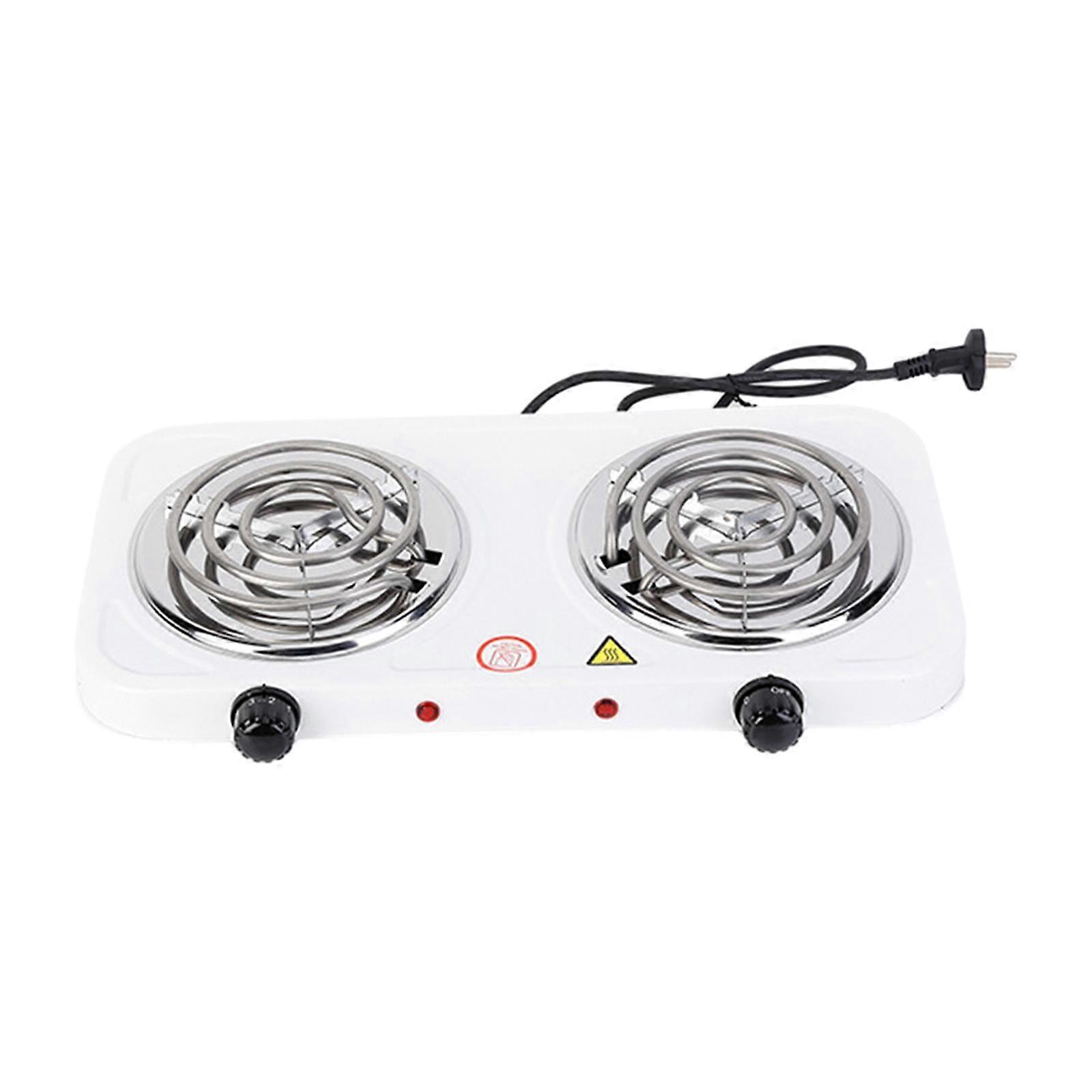Double Burner Cooktop Compact for Home, Travel, Outdoor Activities Power Indicator Lights 2000W Adjustable Temperature Knob Electric Cooktop