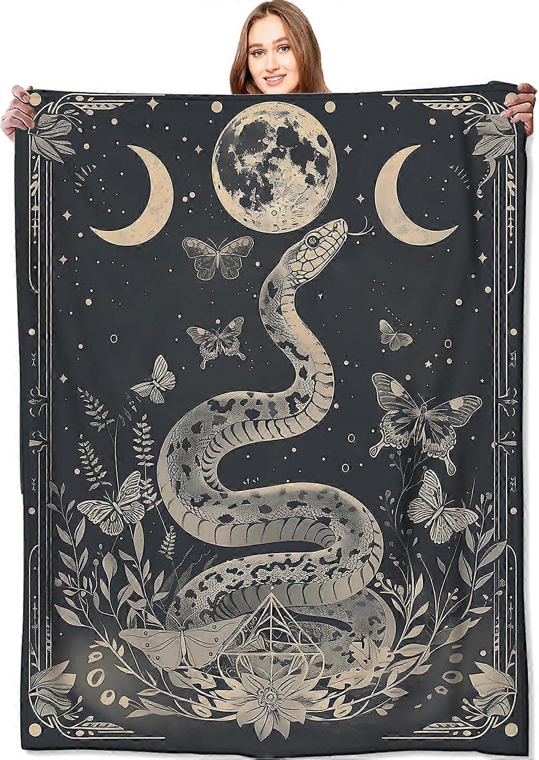 Mystic Snake Blanket Celestial Moon Throw, 60x80in, Lightweight Soft Fleece, Astrology Butterfly Design, Horror Spiritual Decor, Birthday Gift for