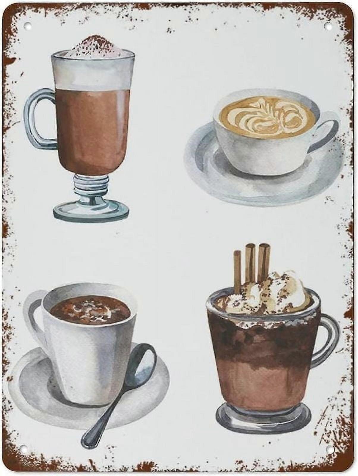 Funny Vintage Tin Metal Sign Coffee Print Bar Coffee Shop Restaurant Decor Watercolor Bar Art Kitchen Wall Art Home Size: 16 x 12 Inches
