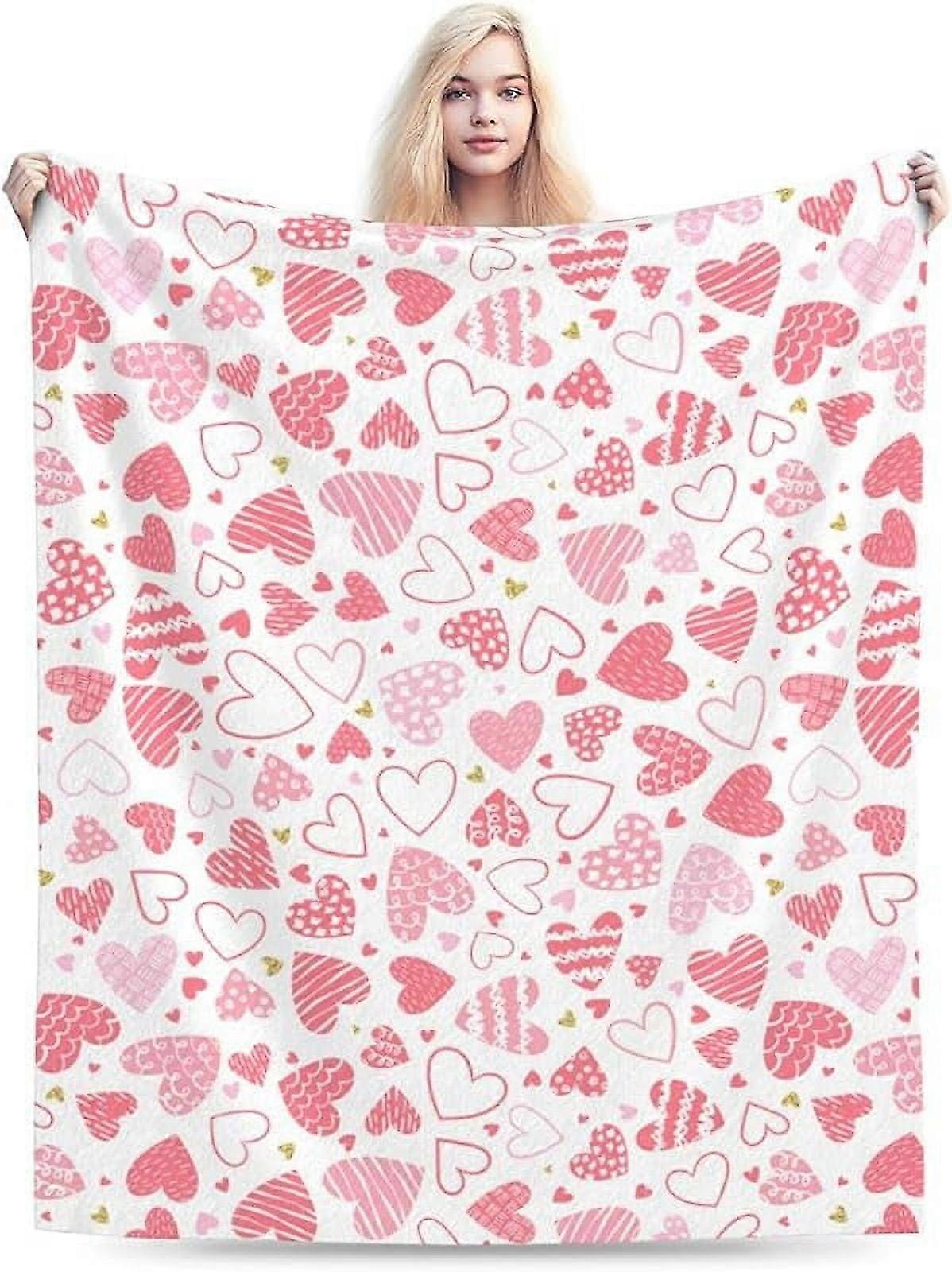 Heart Blanket Super Soft Lightweight Fleece Throw - Compatible with Home Decor, Cozy Couch Blanket for All Year, Gift for Valentine, Mother's Day