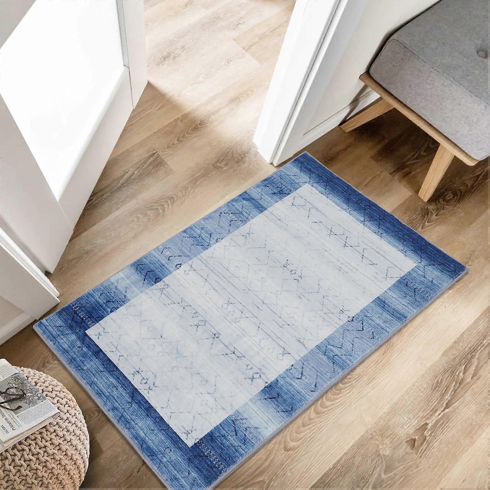 Haperlare 2' x 3' Bordered Rug Machine Washable Rug Non Slip Low Pile Modern Indoor Area Rug Mat Small Throw Doormat Rug, Blue/Beige