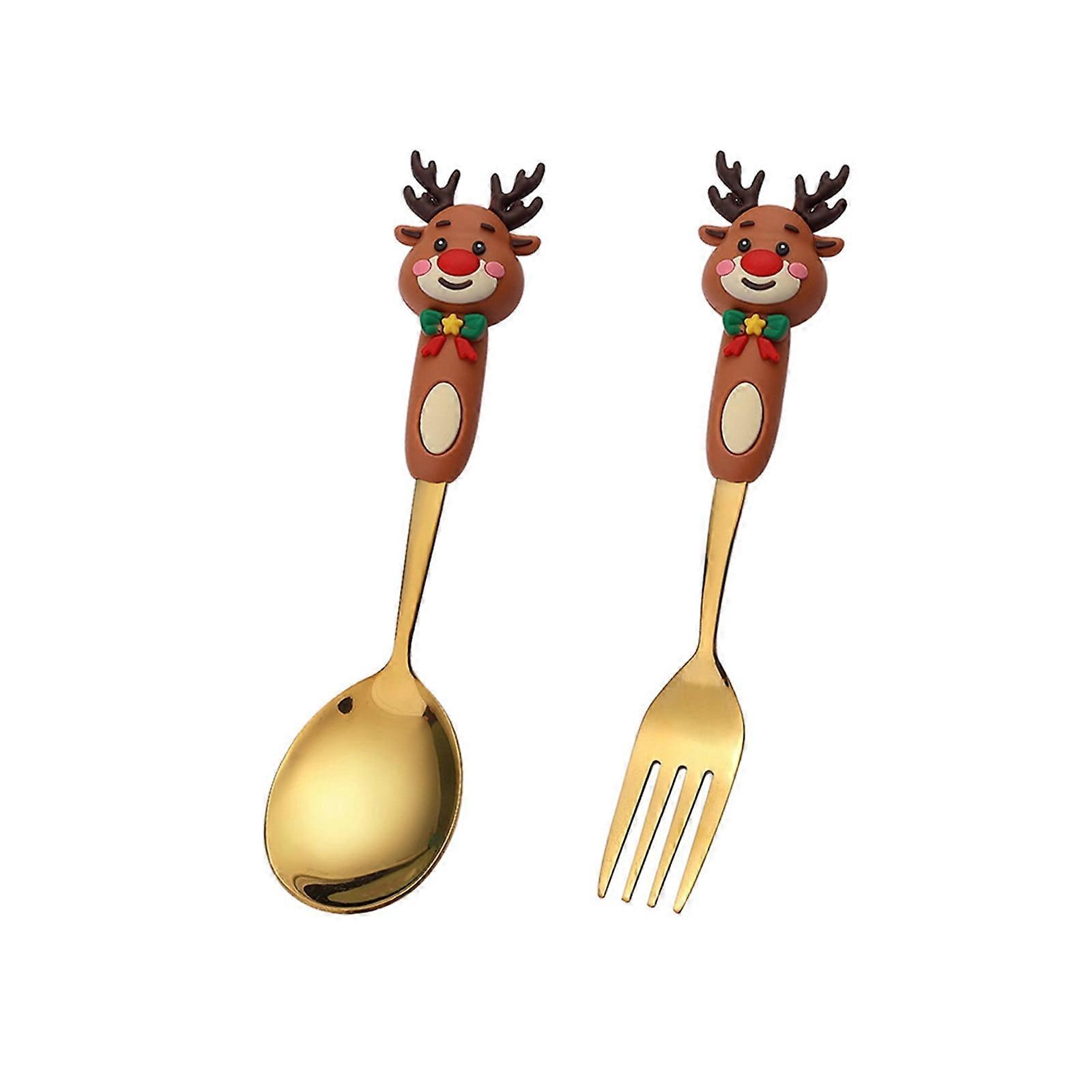 2024 Christmas Spoon Fork Sets Xmas Holiday Party Dessert Spoon Stainless Steel Tableware Sets 2pc Cute Home Table Decoration