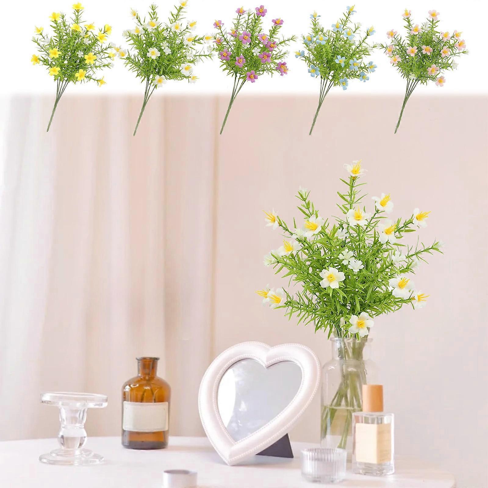 Jacenvly Fall Decor Outdoor Simulated Flower with 5 Forks, Water Grass & Small Daisy Arrangement, Fake Flower for Home, Kitchen, Shooting Prop,
