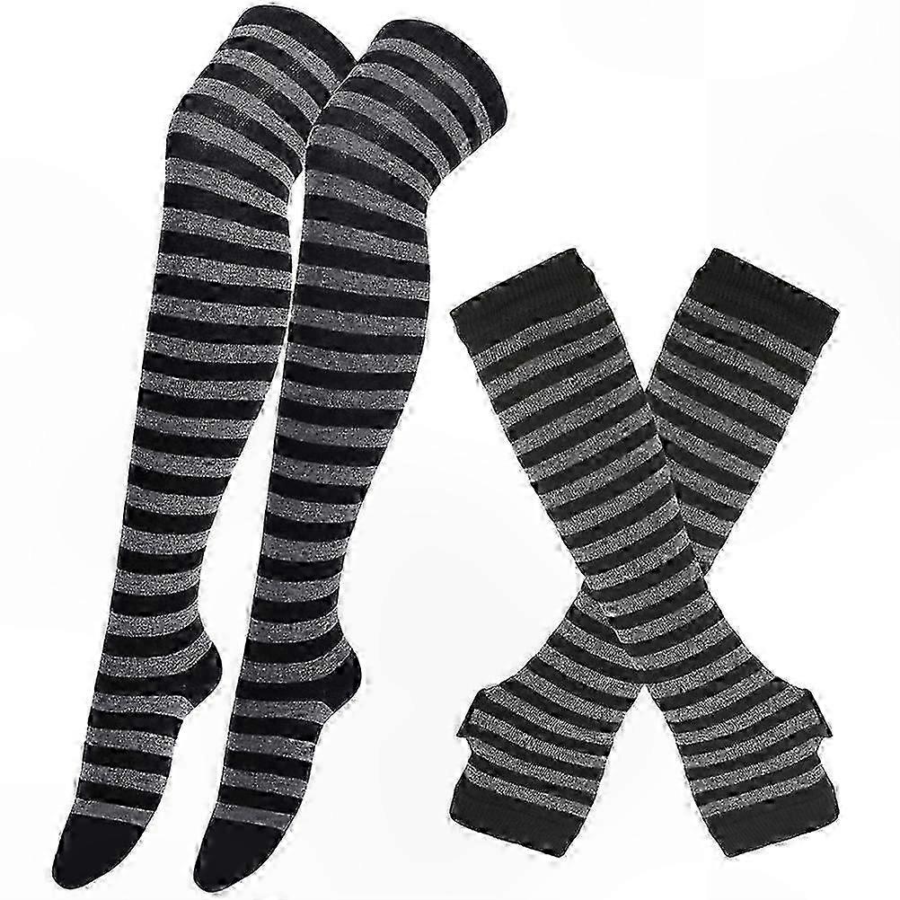 Winter Leg Warmers for Women Striped Arm Sleeves Windproof High Socks Arm Leg Coverings