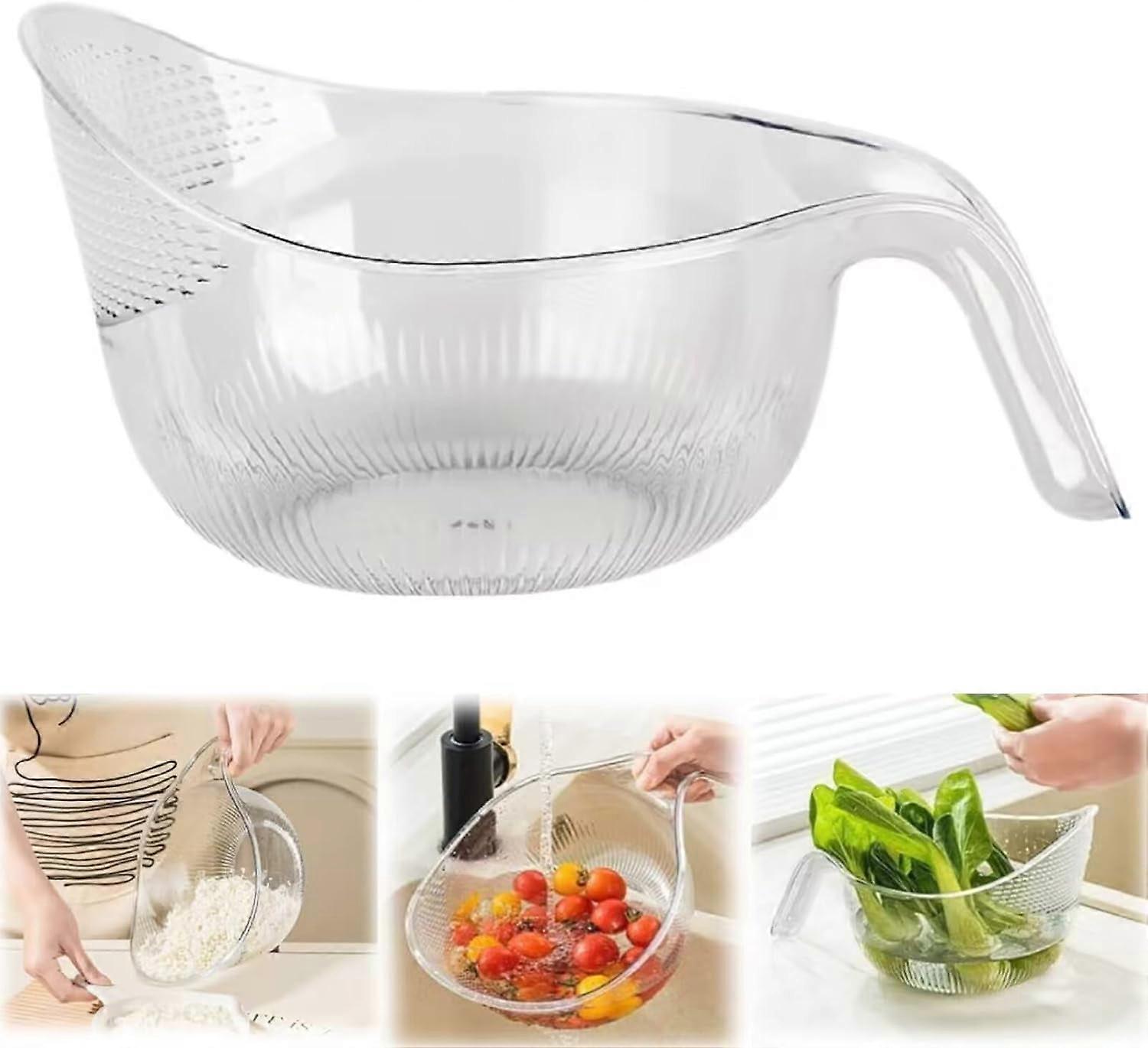 Rice Washer Strainer Bowl with Handle, Plastic Colander for Rice, Vegetables & Fruits - White