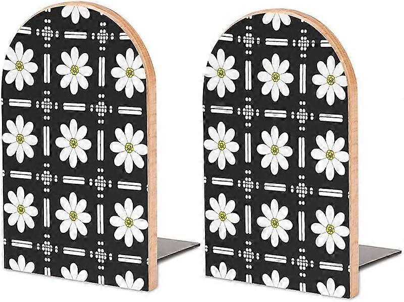 Dahlia-Floral-pattern2 Large Decorative Wood Bookends with Non-Skid Pad Design, Heavy Duty Bookends,Book Stand for CDs,1 Pair