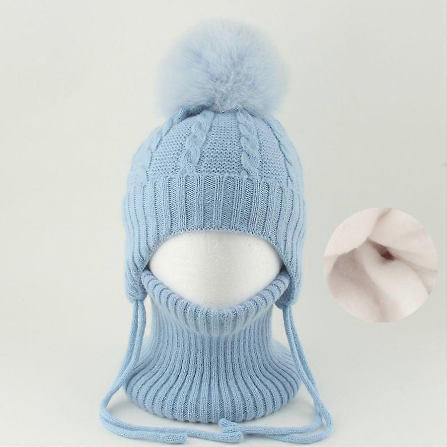 Fleece-Lined Pom Pom Hat and Scarf Set Warm Ear Protection Cap for Kids Boys Girls