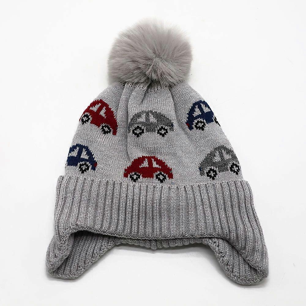 Cartoon Car Jacquard Knit Hat Kids Fleece Lined Warm Beanie