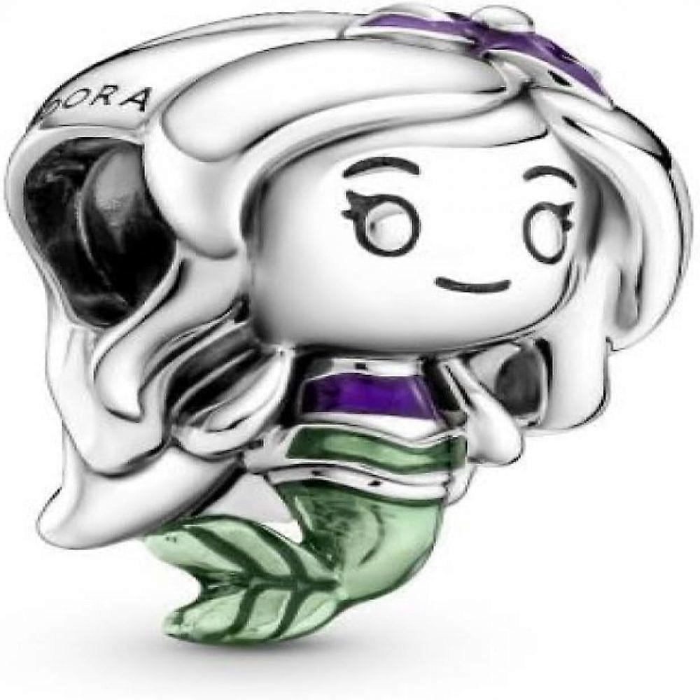 S925 silver Disney Little Mermaid charm streamlined carving design bracelet DIY accessories Ariel silver pendant