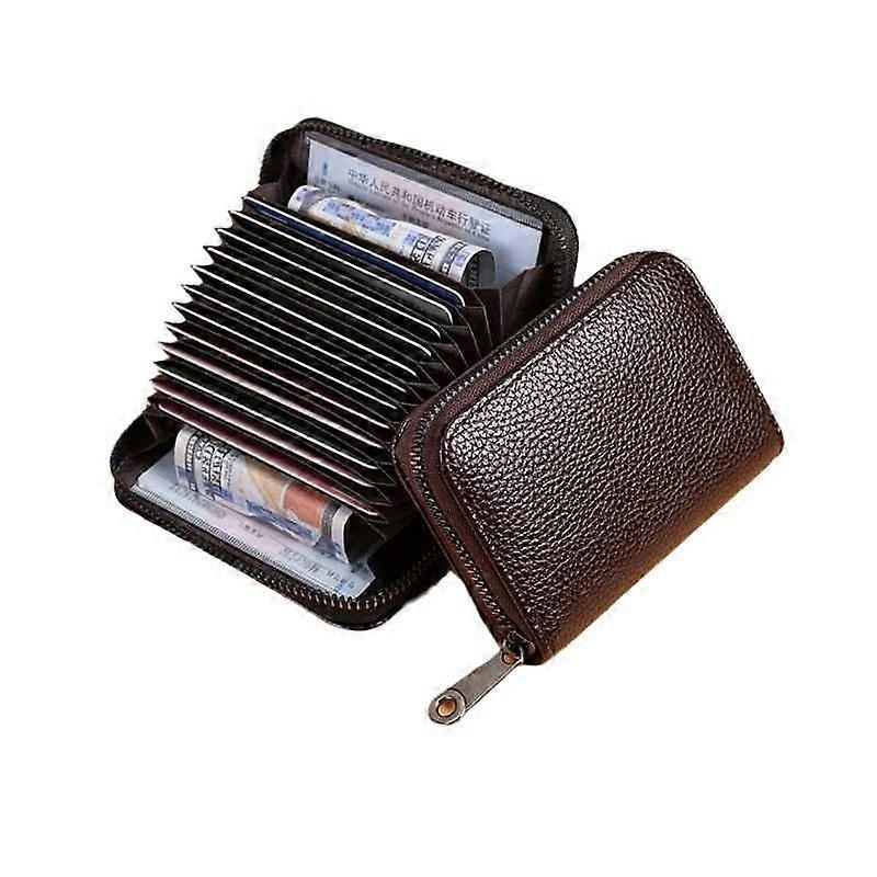 2pcs Credit Card Holder Genuine Leather Small Card Wallet for Women or Men 20 Card Slots RFID Blocking Accordion Wallet with Zipper (Black and Brown)