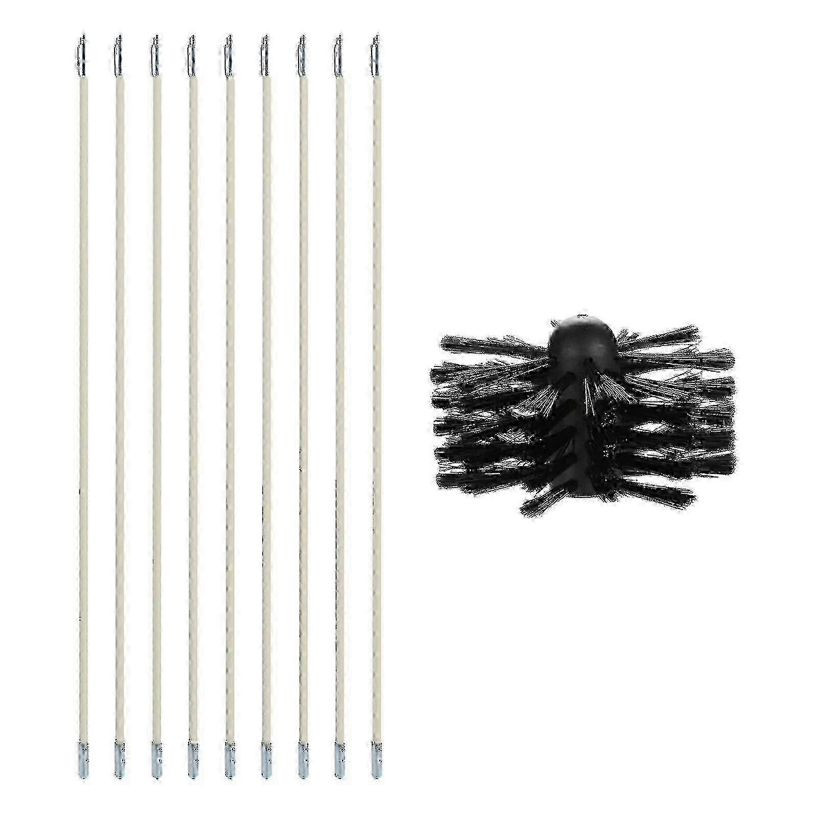 9-Piece Black Chimney Cleaning Brush Kit with Flexible Nylon Brush Head for Fireplace and Dryer Vent