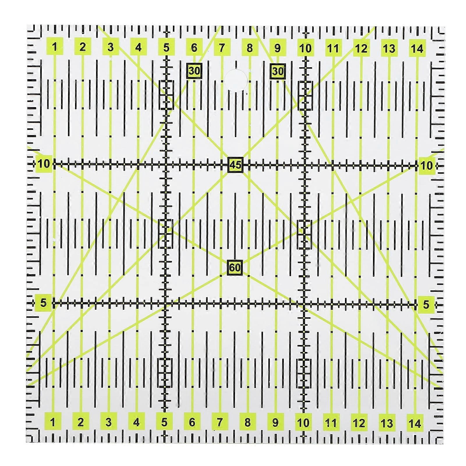 Clear Acrylic Quilters' Ruler with Double Colored Grid Lines, 12" x 12" Square Quilting Sewing Ruler for Accurate Measurements