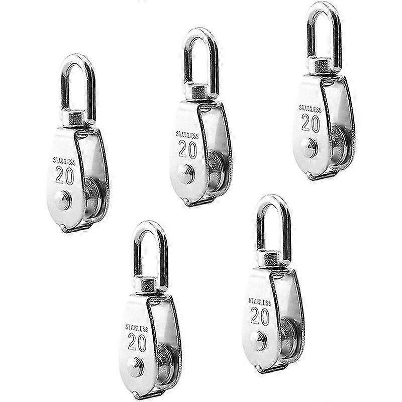 Single Pulley, 5pcs M20 304 Stainless Steel 20mm Wheel Block Roller for Lifting