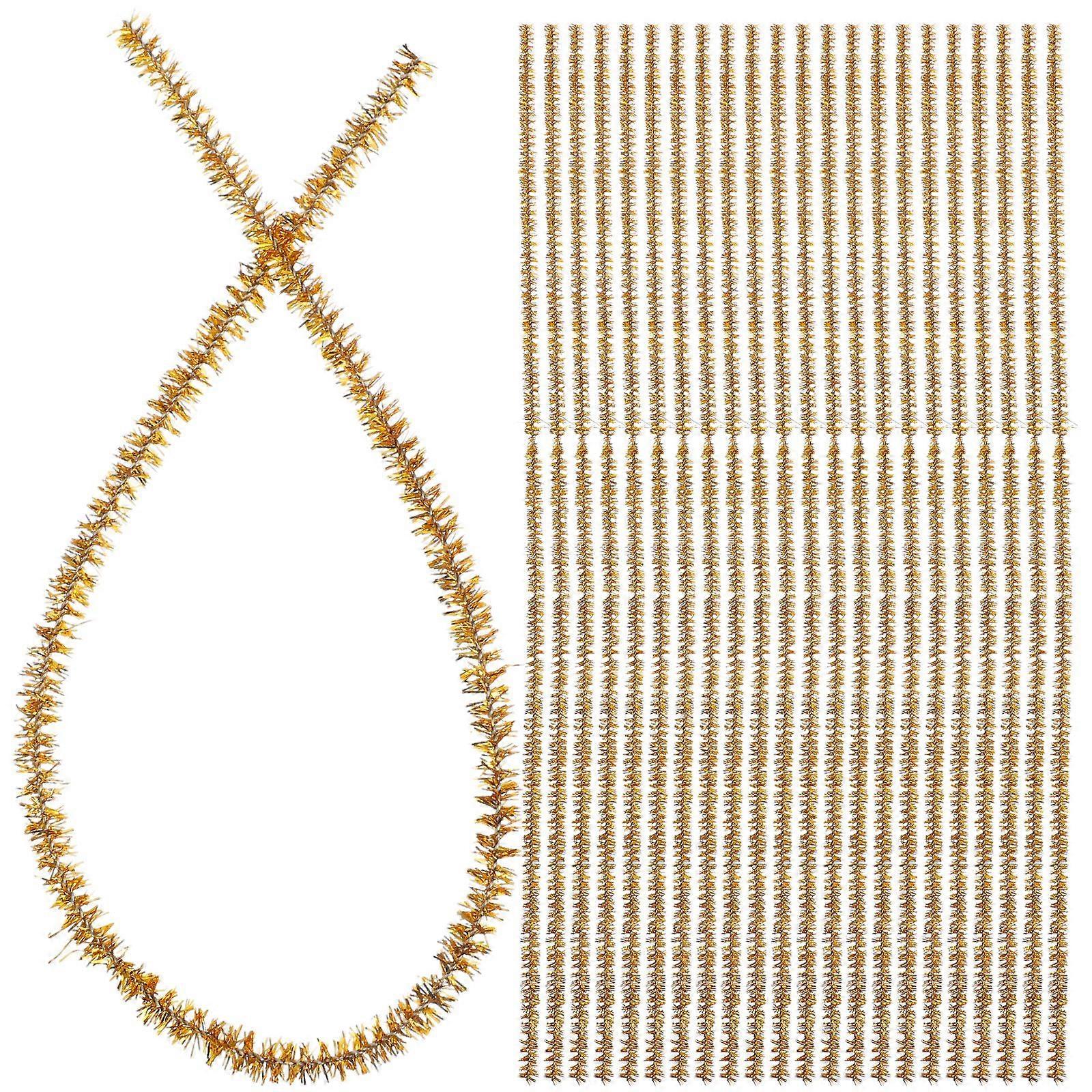 100pcs Gold Sparkly Pipe Cleaners Crafts Tinsel Chenille Stems For Kids Diy Art Projects Creative Handicrafts Pipe Cleaning Sticks