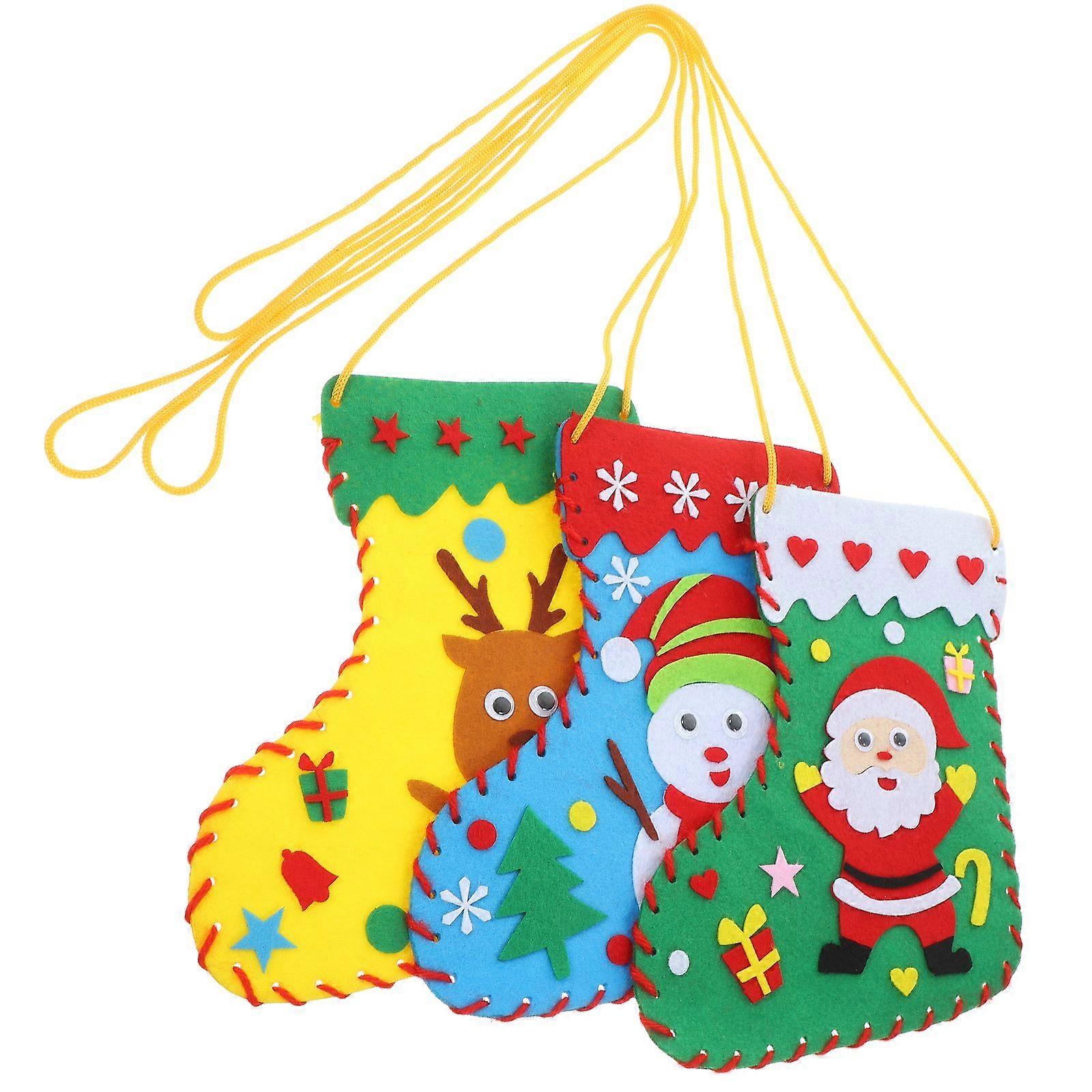 3pcs Christmas Stocking Pendant Creative Non-woven Xmas Sock Hanging Decor for Children DIY Handmade Materials
