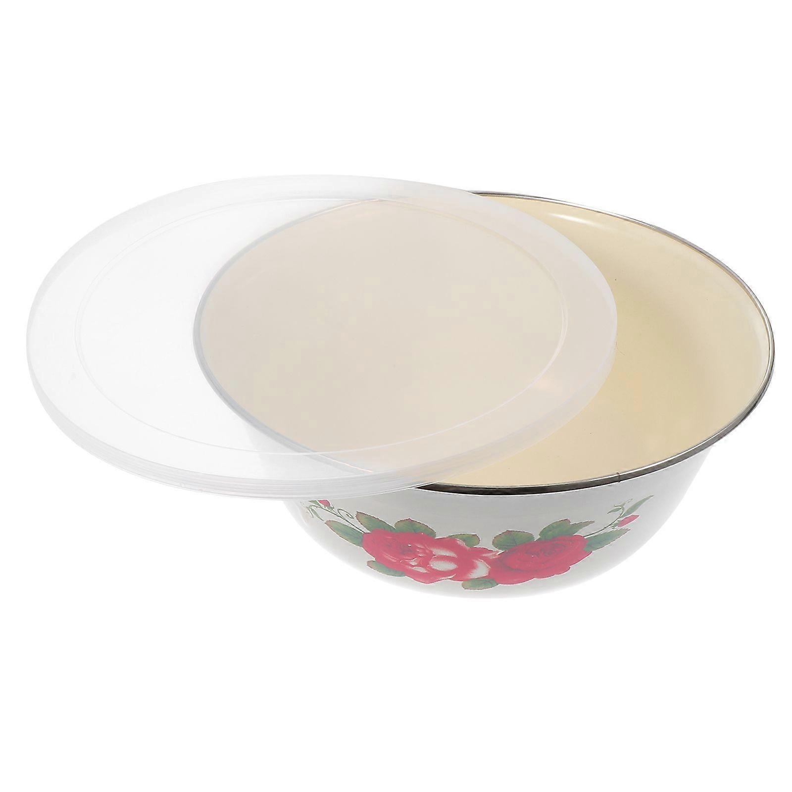 1pc Vintage Iron Enamel Basin Retro Enamel Bowl Tureen Pot with Lid (Beige)