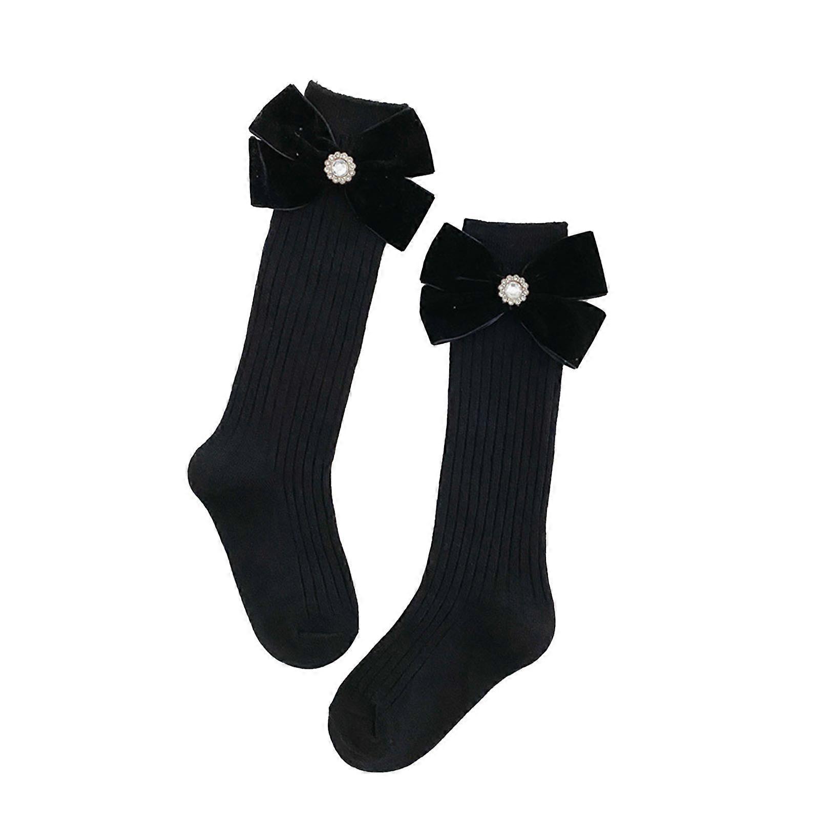 Kid Thin Breathable Comfortable Bow Decorations Skin Friendly Black Girls Knee High Socks for Spring Summer