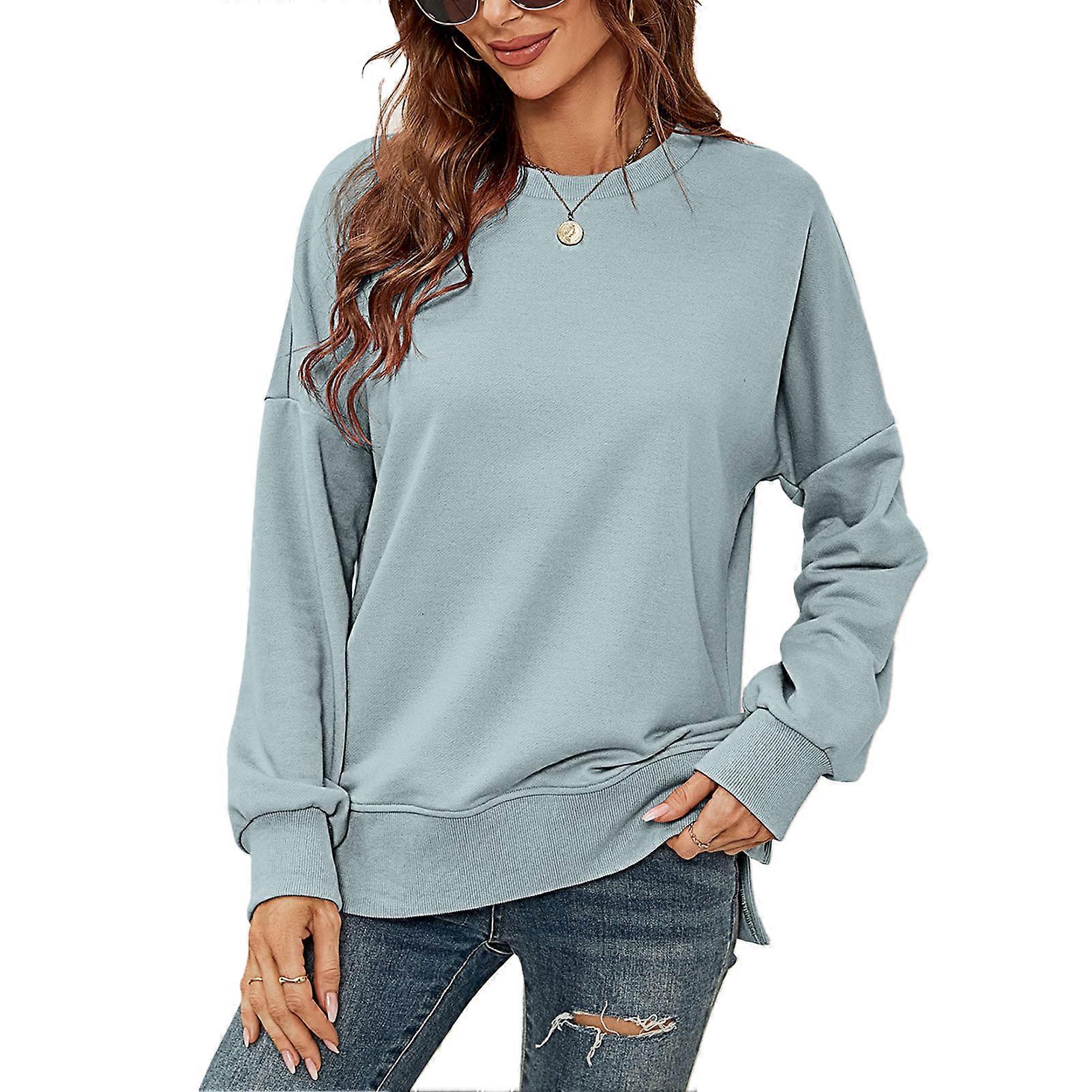 Women Long Sleeve Round Neck Side Slit Loose Women Pullover Sweatshirt Top for Daily Travel Office